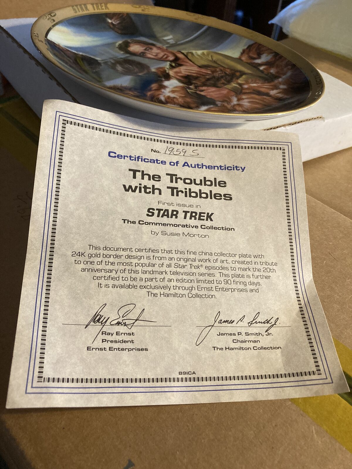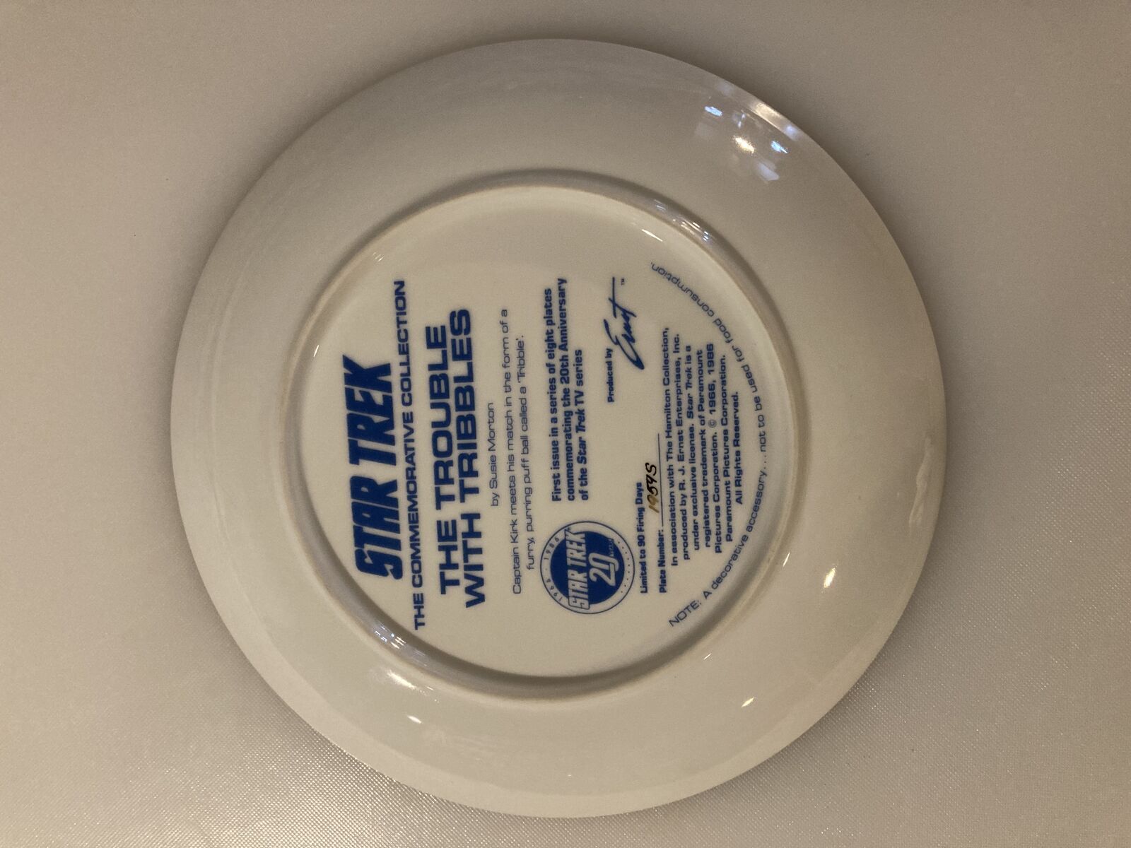 ZelleThis is plate number 1959 S from The Hamilton Collection's limited edition Star Trek - The Commemorative Collection plate collection - "The Trouble With Tribbles".