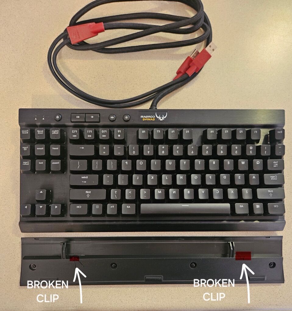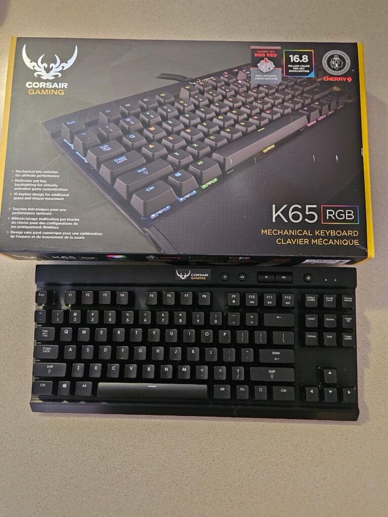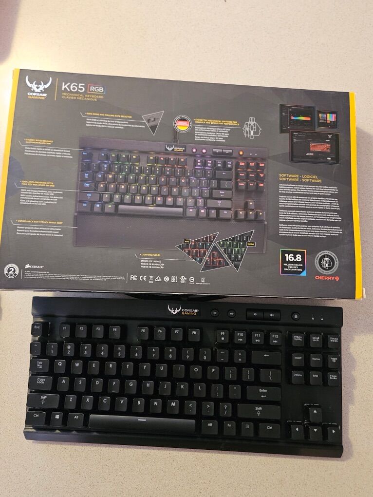 VenmoCORSAIR GAMING K65 RGB MECHANICAL KEYBOARD 16.8 MILLION COLOR PER KEY BACKLIGHTING FAST, PRECISE, DURABLE CHERRY*MX KEY-SWITCHES note broken clip on wrist guard. It still latches though.