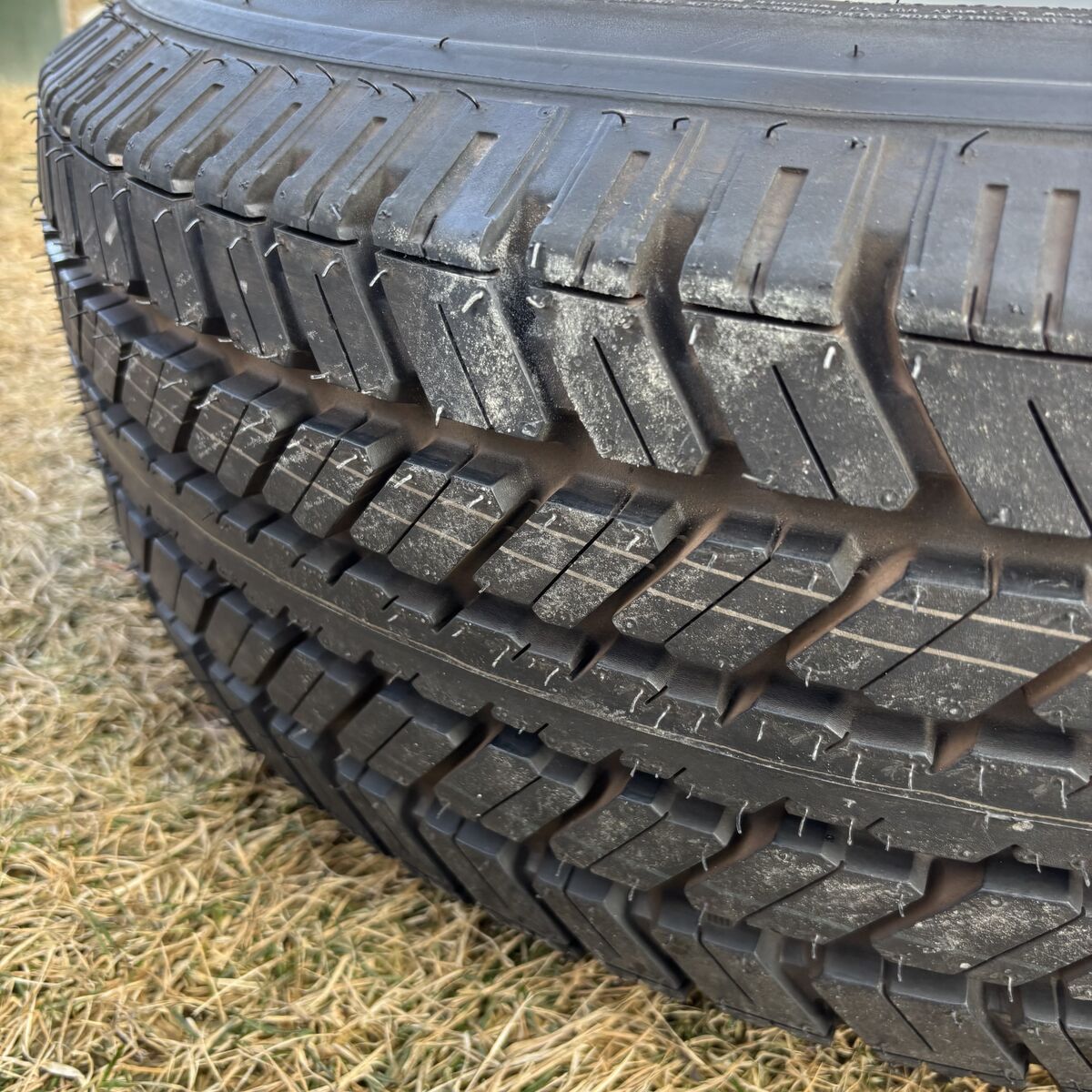 TIRE HAS NEVER BEEN DRIVEN ON. Tire has FULL tread and still has the nipples. Tread is 100%, but due to older DOT maufacture date, it should only be used on as an emergency spare tire. Please see all photos to confirm fitment and a condition understanding.