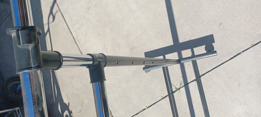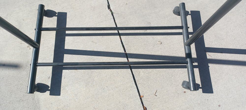 Good condition with extended sides and a 2nd rack on top. Adjustable height option and has wheels.