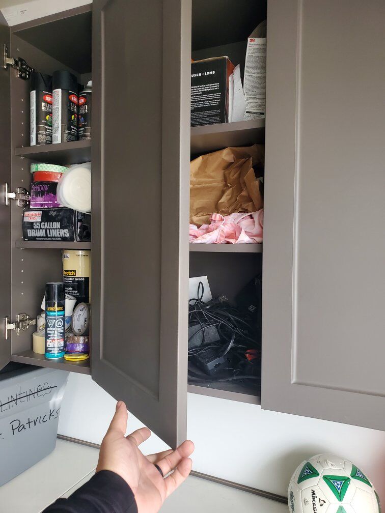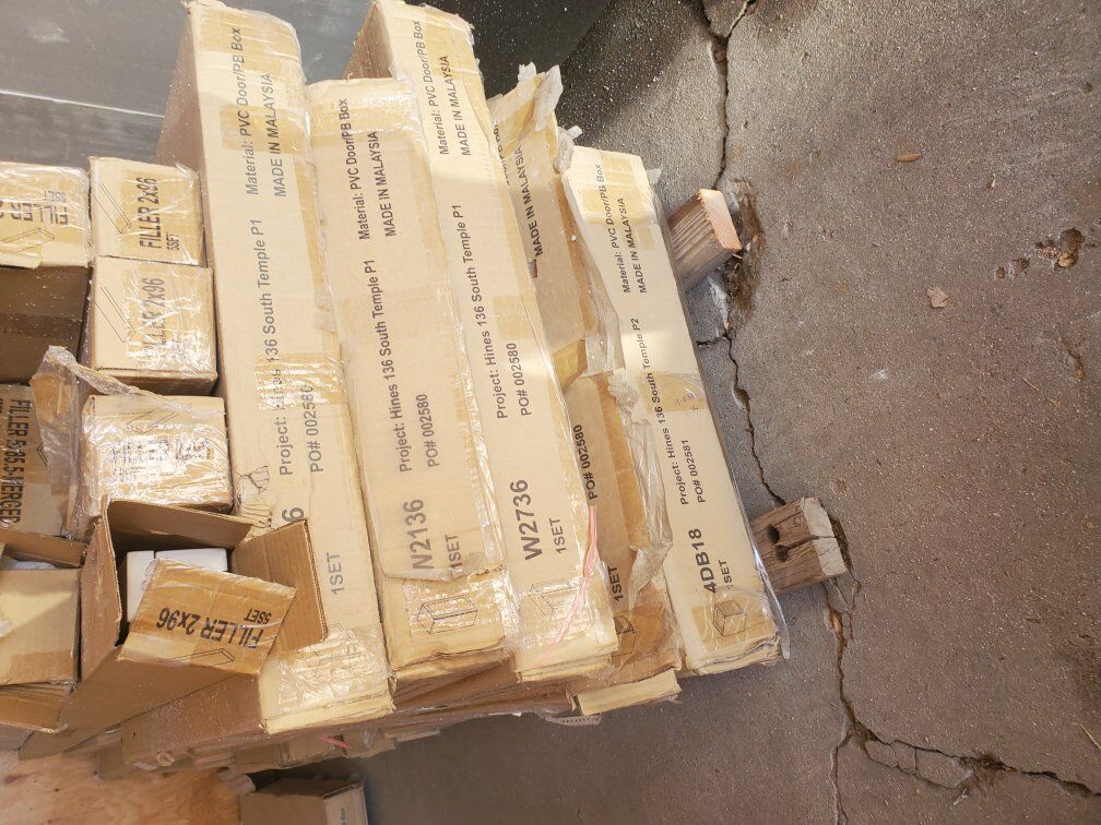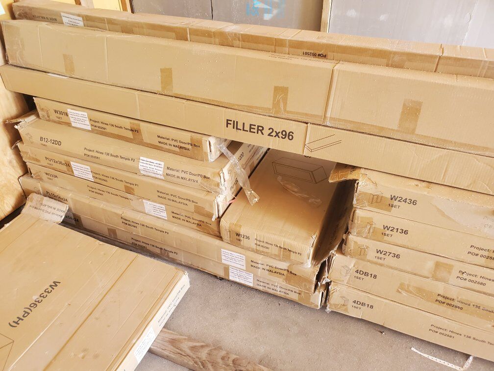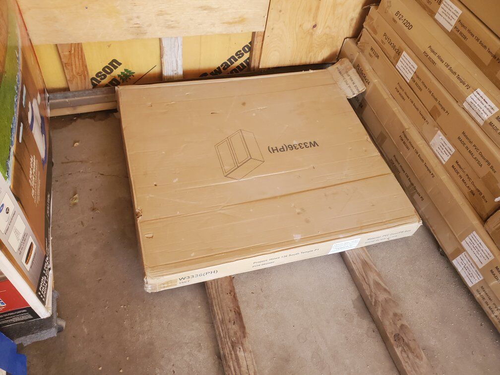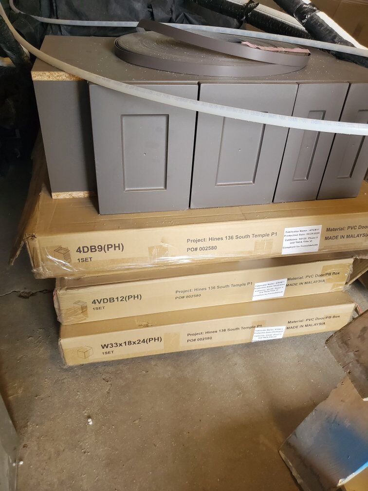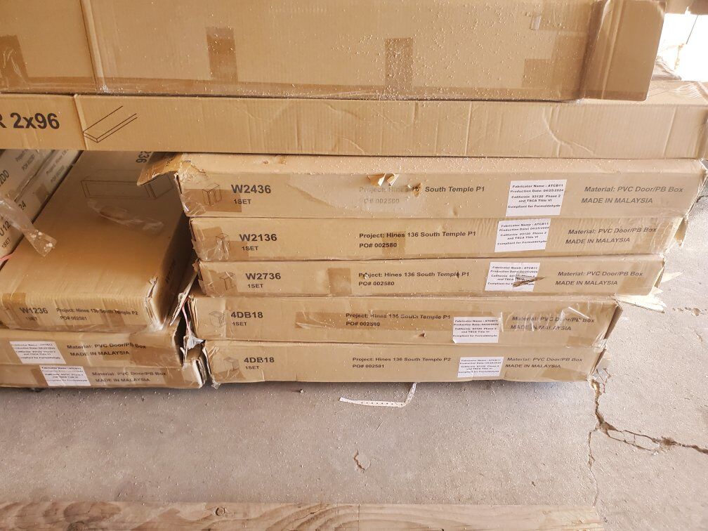 Brand new inboxes have a description of what it looks like In the main picture when it's put all together Boxes are a random 25.00 per box or take it all for a 600.00 A creamy white color and the Gray color in the picture 2 different Colors of cabinets .