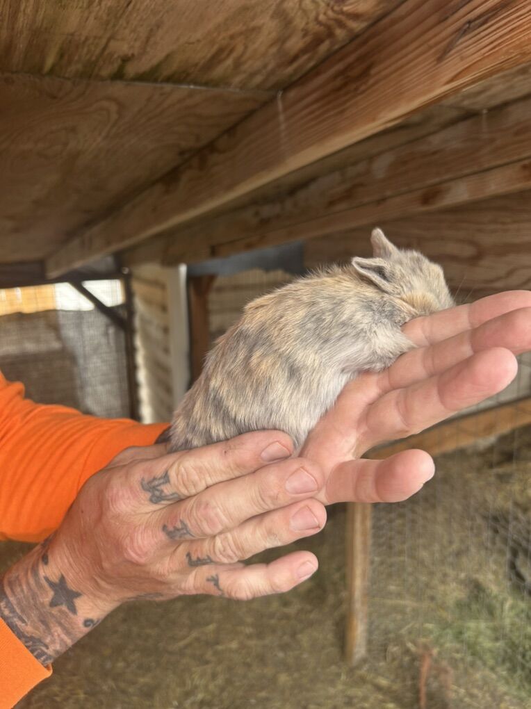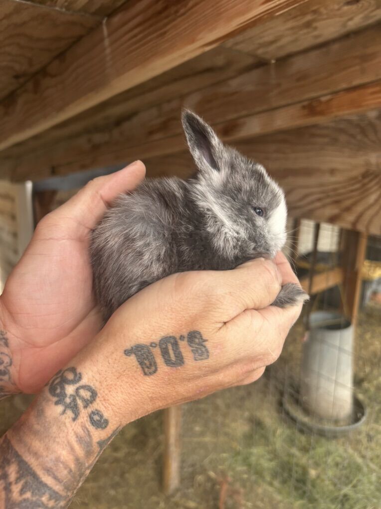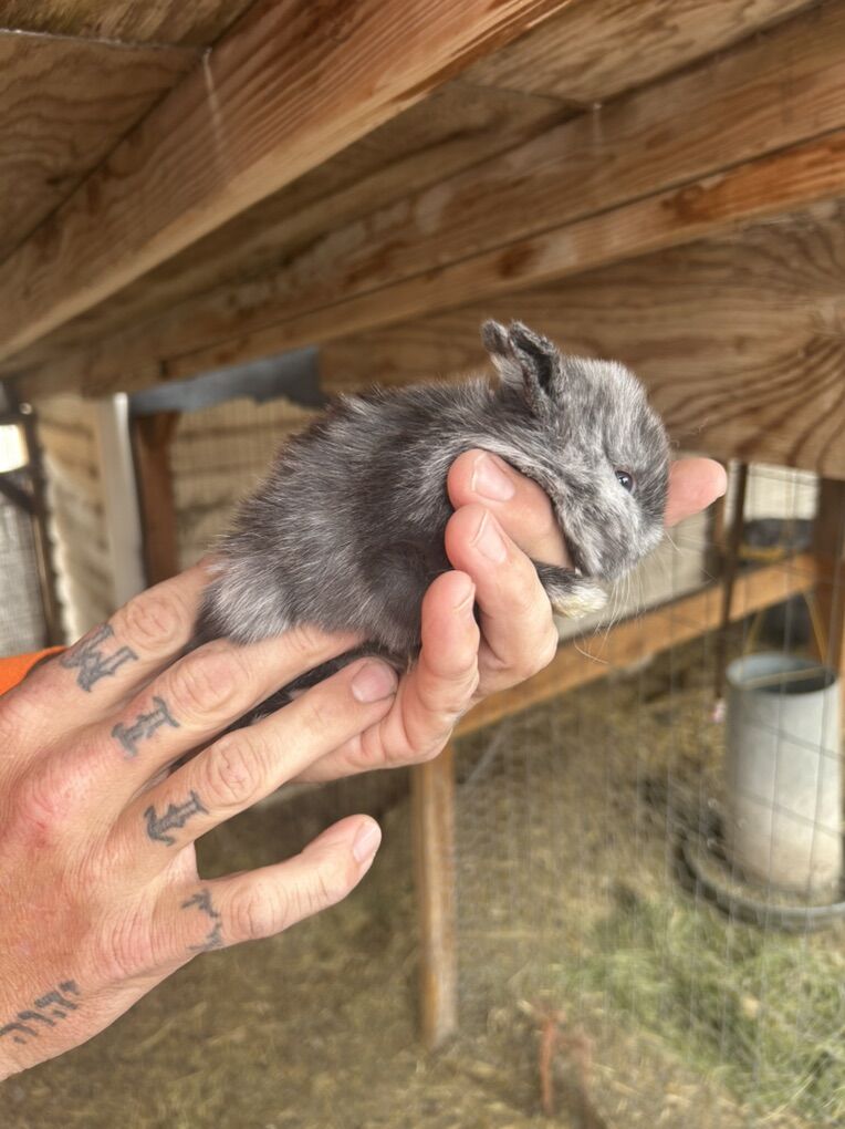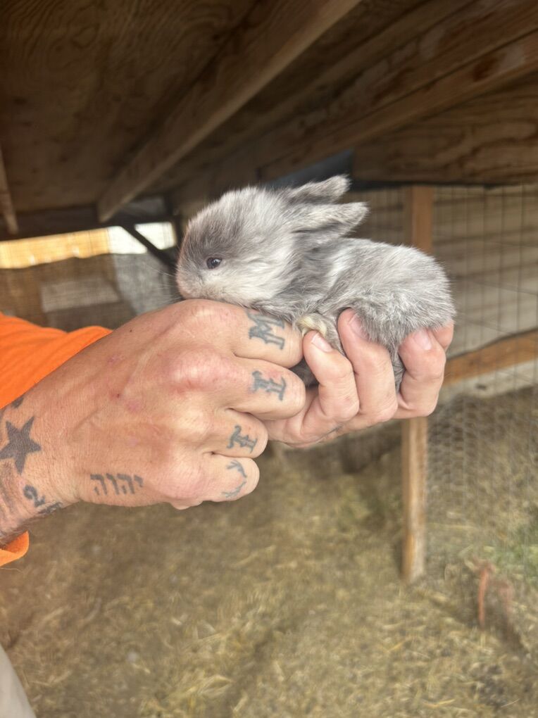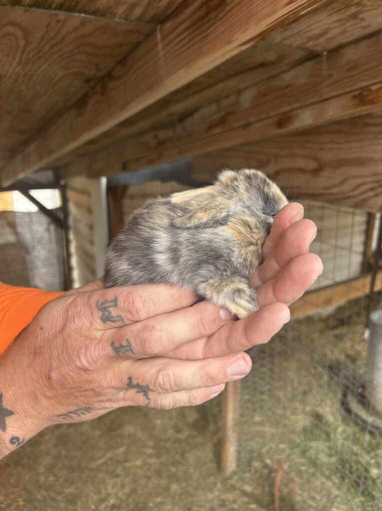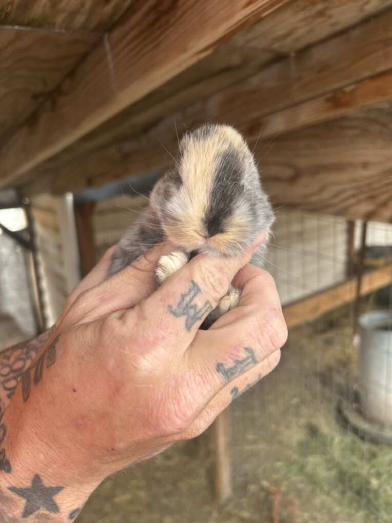 Mom is a pure bred Harlequin colored Orange harlequin. Dad is a pure bred Holland lop colored Black and White Magpie These are the cutest babes ever! And will be ready just in time for Easter. I will know sexes soon and will update post accordingly. I have 8 total I goofed up and missed pictures for the 8th one The last 2 photos are of mom and dad.