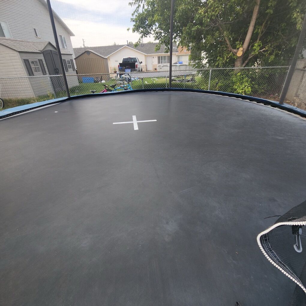 ApplePayNeed to make room and are unfortunately getting rid of the trampoline. Mat in great condition, discoloration from sun/weather. I did throw away the pole padding and the round pad that covers the springs. Was starting to tear and need replacement. 75$ OBO