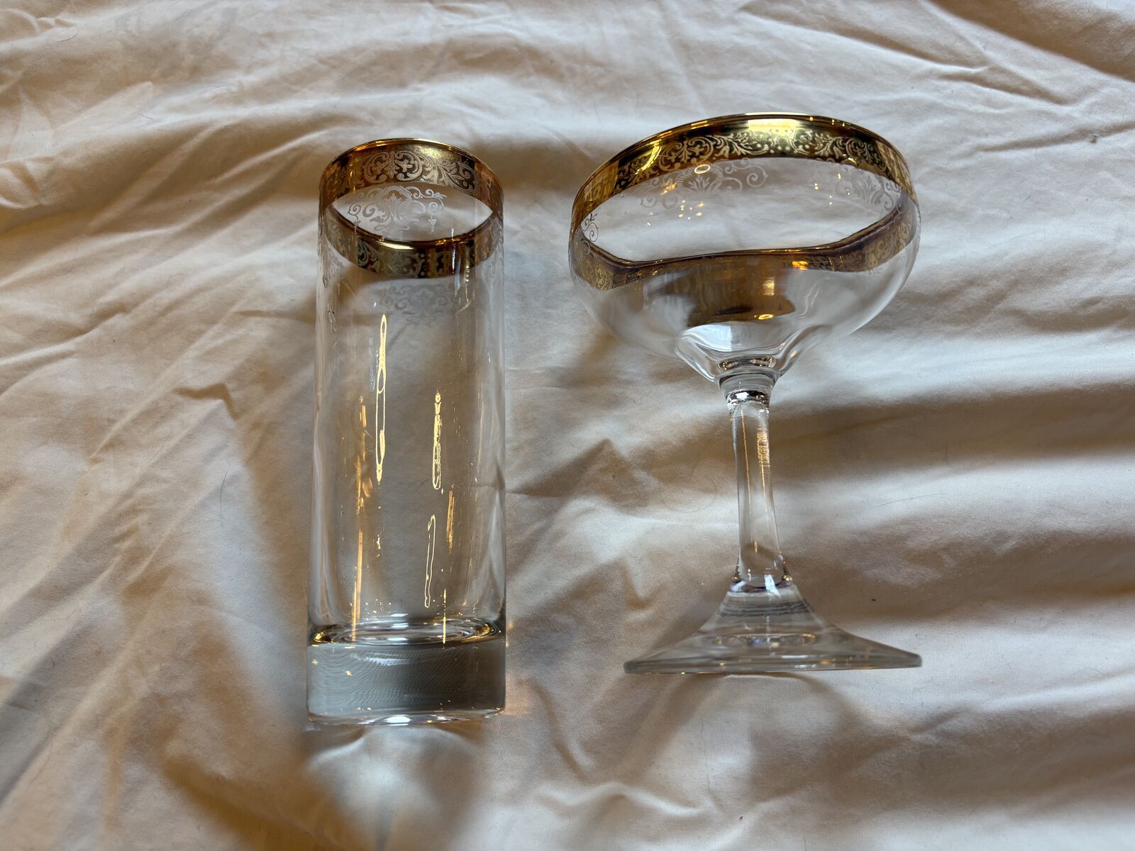 BONUS GIFT INCLUDED: Set comes with a FREE 6-piece vintage Cellini blown crystal glassware set — etched and hand-decorated with 24k gold. Imported from Italy and perfect for weddings, celebrations, or your vintage bar cart!