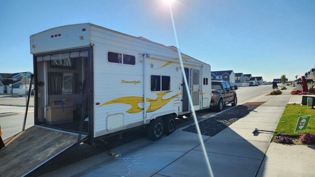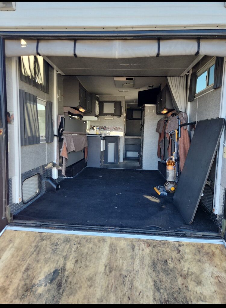 Venmo2006 Skyline Freestyle Toy hauler Travel Trailer 28 feet in length Cargo Capacity: Roughly 11 ft 4 inches of space to the rear door Equipment: 4000-watt Onan MicroQuiet generator Features: Power rear bed, air conditioning, heat queen bed in front also queen bed in drop down bed table turns into a bed also couch folds down to a bed back door has a screen comes with stabilizer bars and a winter cover sun shade needs to be replaced.