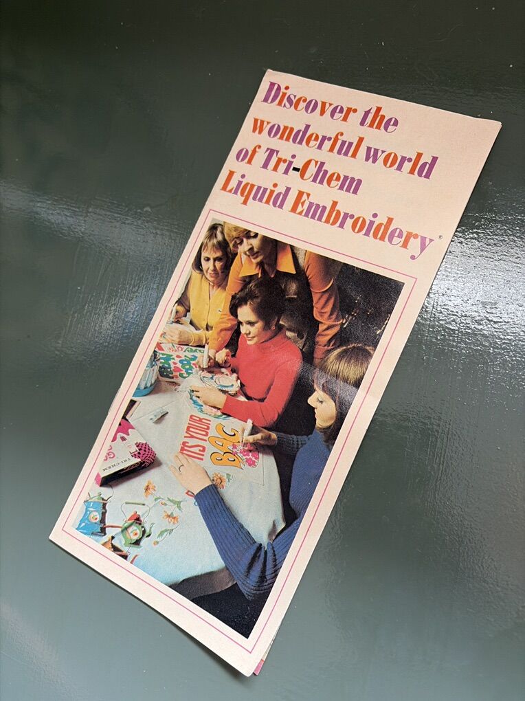 Vintage Tri-Chem Tin Bucket Can. This holds makers or embroidery pens. It really can be used for anything. Great floral graphics. Has a little rust on the bottom but overall nice vintage condition. Measures approx 12 x 10.5 x 8