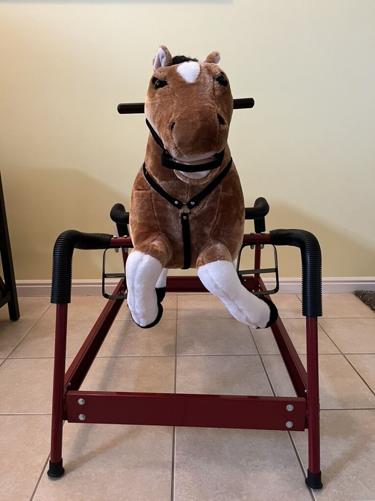 VenmoPlush rocking horse toy. Batteries still work. Button on ear makes trotting and horse noises when you push it. Springs are all in good condition. Smoke free home. Still in really good condition my son no longer plays with it.