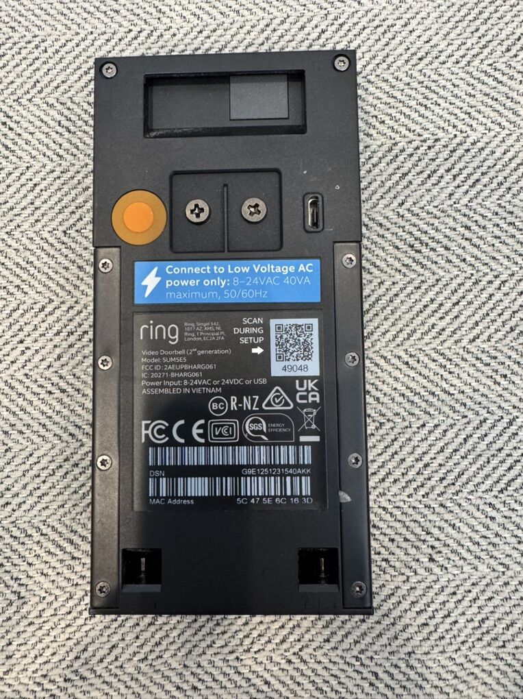 VenmoRing 2nd Generation Batterie Powered Doorbell Camera. Model 5UM5E5 has had light use, works great.