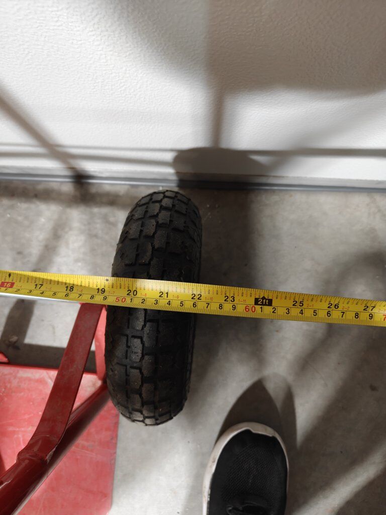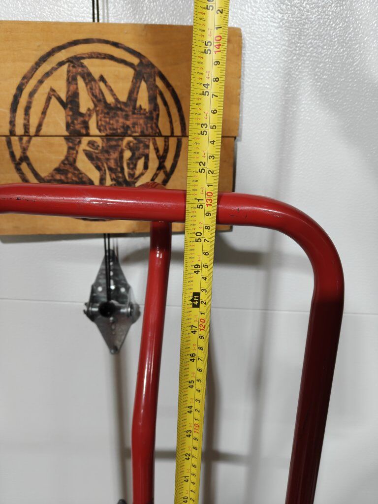 VenmoHarbor Freight dolly (also called a hand truck). Rated for 600 lbs, I've moved everything from laundry washers to Gun Safes with it. No warping, no structural damage. Paint is scratched. 51" tall (just over 4 feet) The plate is 14"x9" The wheelbase is 22"