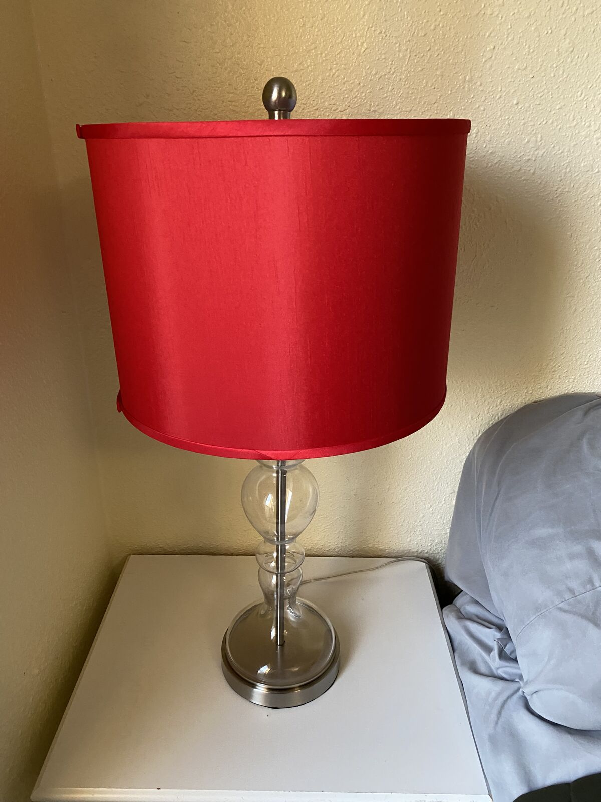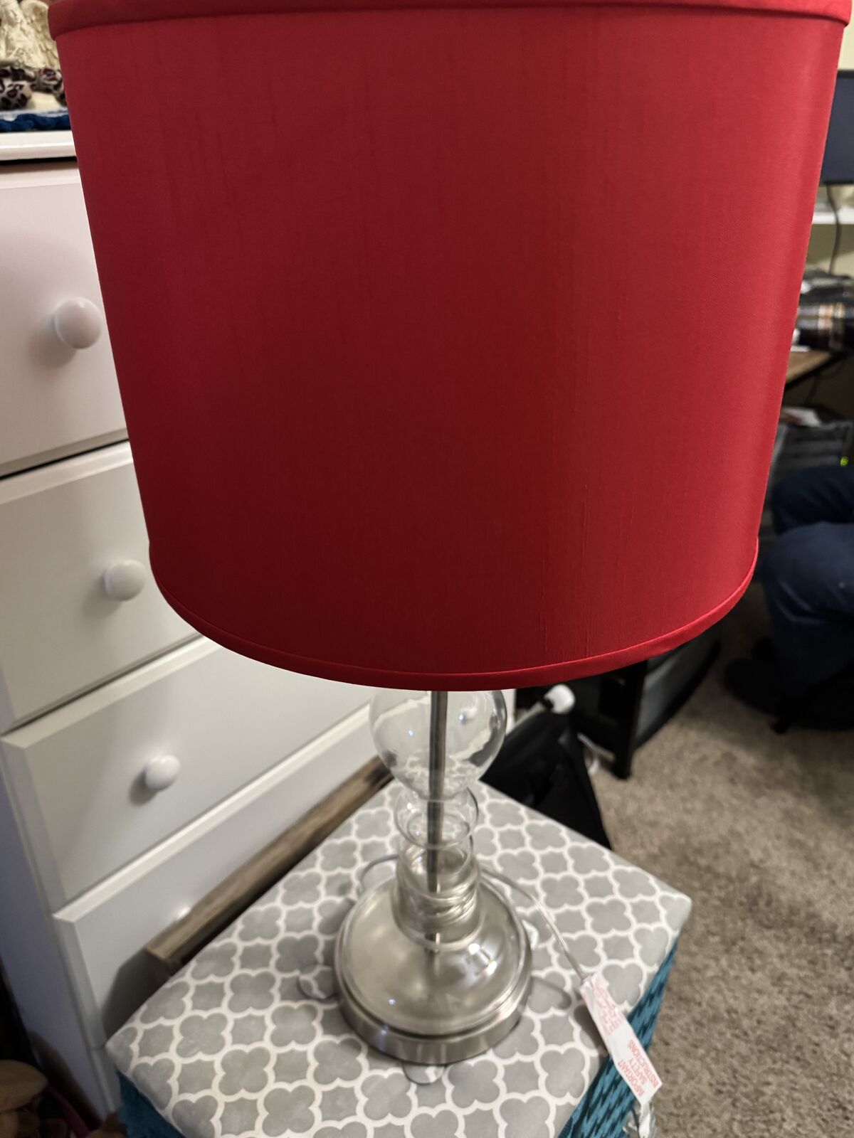 Selling Red Lamp for $50, prefer cash only! New lamp from Minky Couture if you are interested and message me.