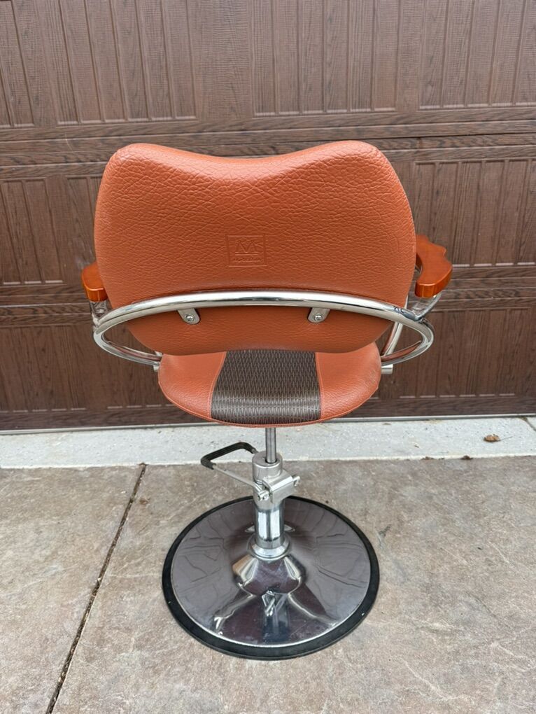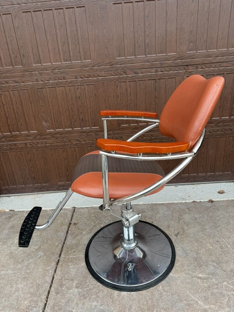 Great condition Orange vintage looking barber chair. Great for a home setup or salon