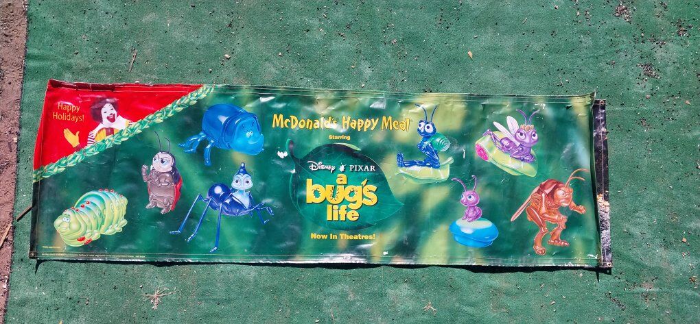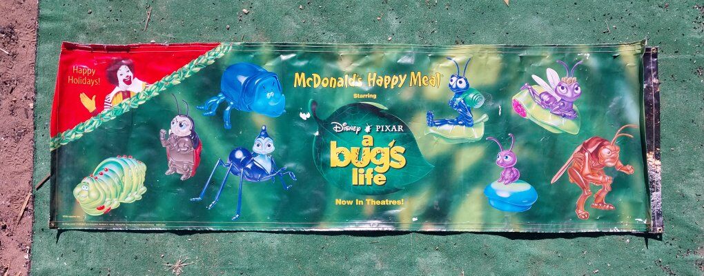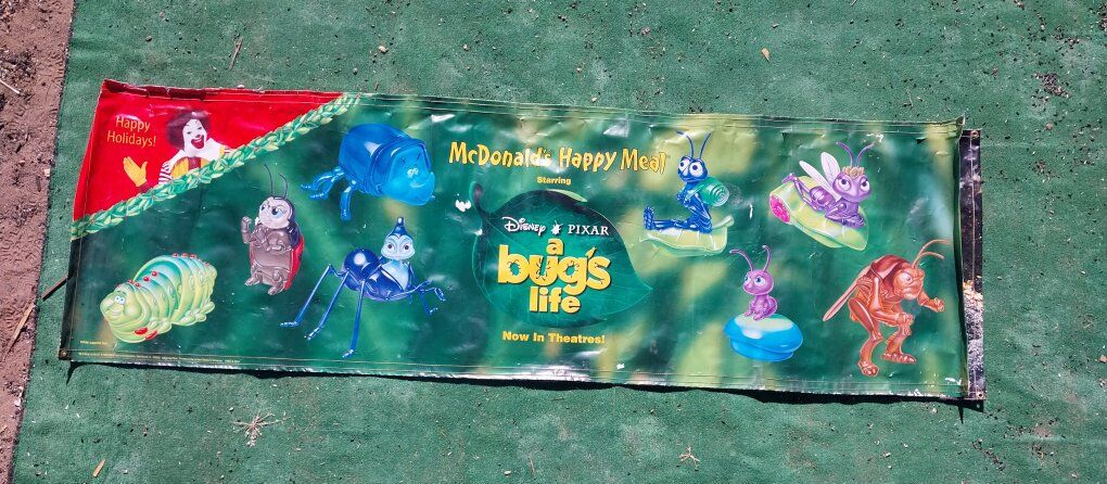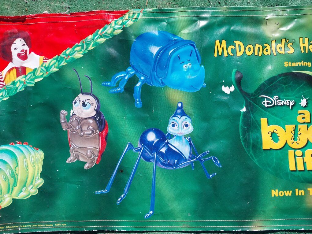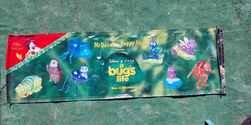 Vintage Walt Disney A bugs life McDonald's Happy Meal Poster. 1998 8 X 2 1/2 Located in Cedar City Utah Text is Best 435 225 7053