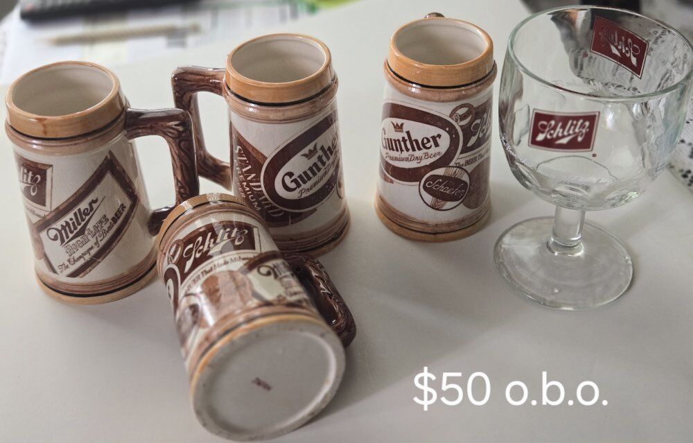 Vintage Beer Steins & Schlitz Goblet – Miller, Gunther, Schlitz Barware $50 obo