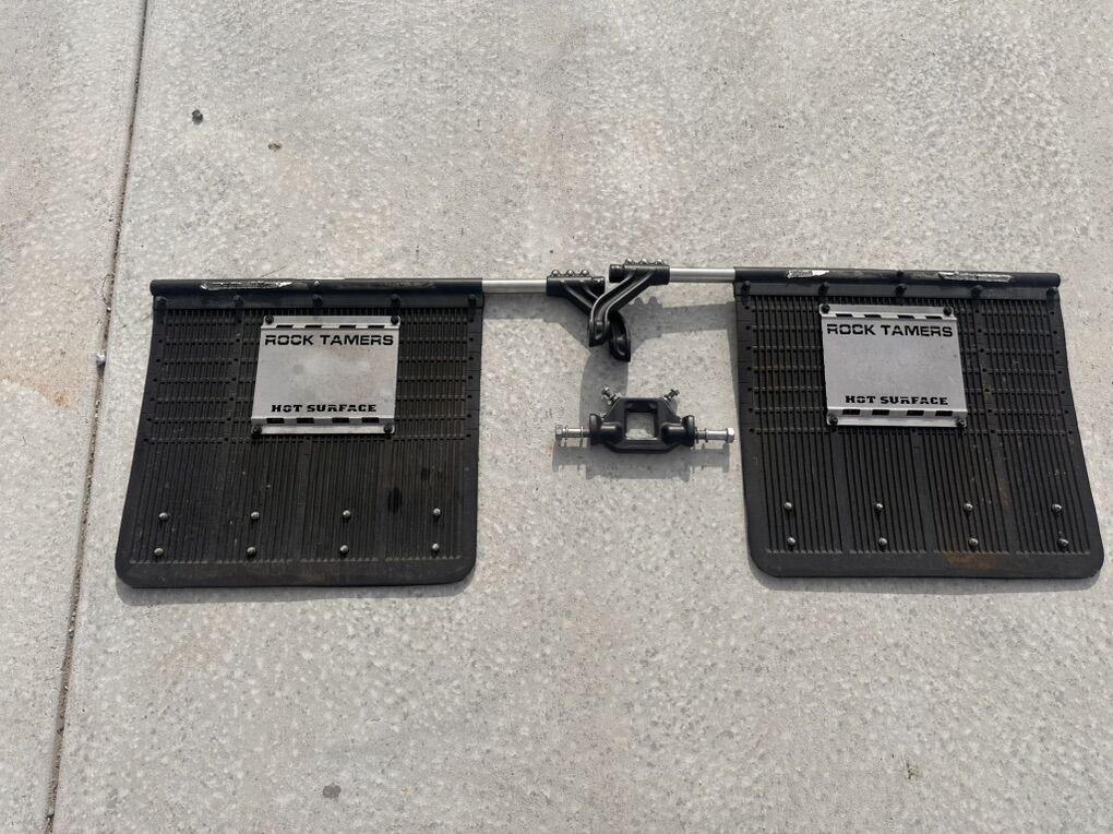VenmoRock tamer mud flaps for 2” ball mount with heat shields for rear facing exhaust. In very good condition.