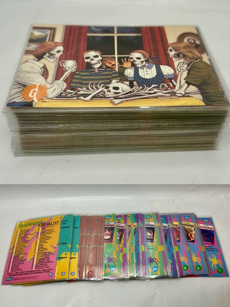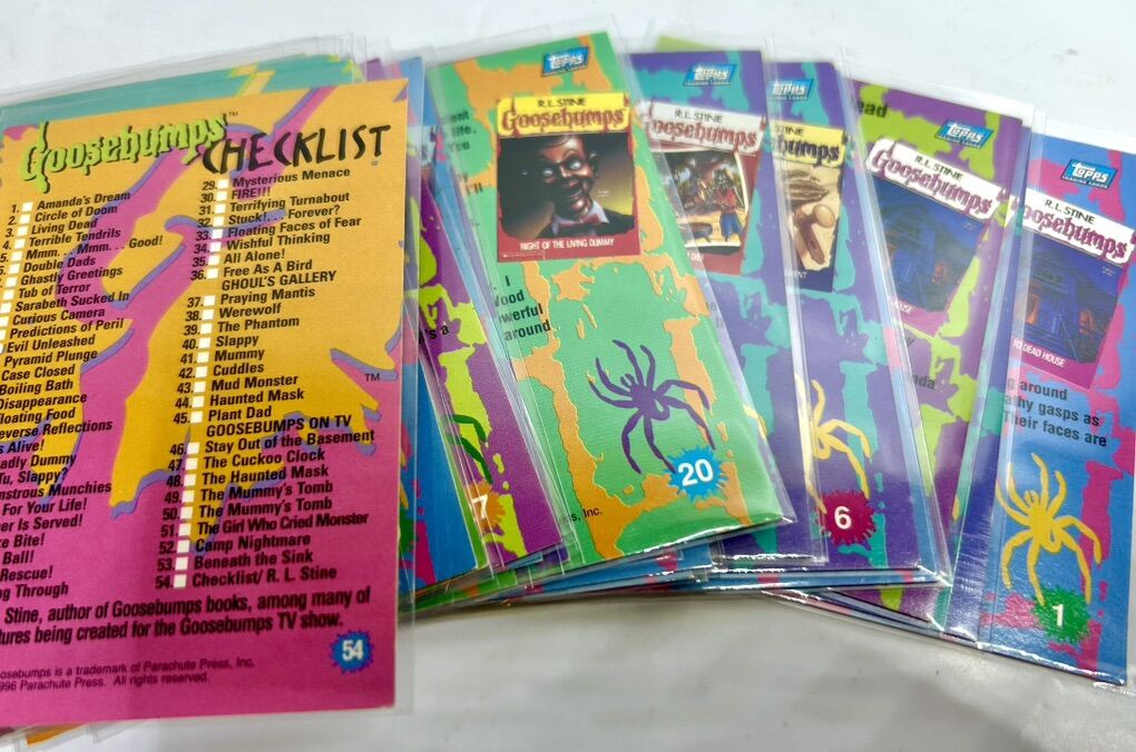 It’s hard to obtain a complete collection of 54 in like new condition for a good price. Most you’ll find are partial collections or show signs of wear. These cards are no longer in production so they are excellent collector cards. They make a perfect addition to any card and/or Goosebumps collection! Don’t hesitate to ask any questions!