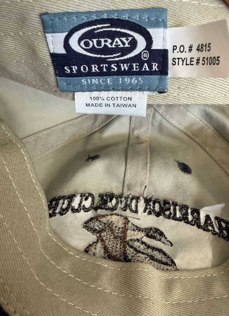 The Vintage 1990’s Harrison Duck Club Beige Embroidered Adjustable Hat by Ouray is a stylish unisex accessory perfect for various occasions such as travel, activewear, parties, casual outings, and work. Made of comfortable cotton material in a solid beige color, this baseball cap features an adjustable strap for a customized fit. The embroidered design adds a touch of 90s outdoor style, suitable for hunting, fishing, and other outdoor activities. Whether you're looking for a hat for winter, summer, fall, or spring, this vintage piece is a versatile addition to any wardrobe.