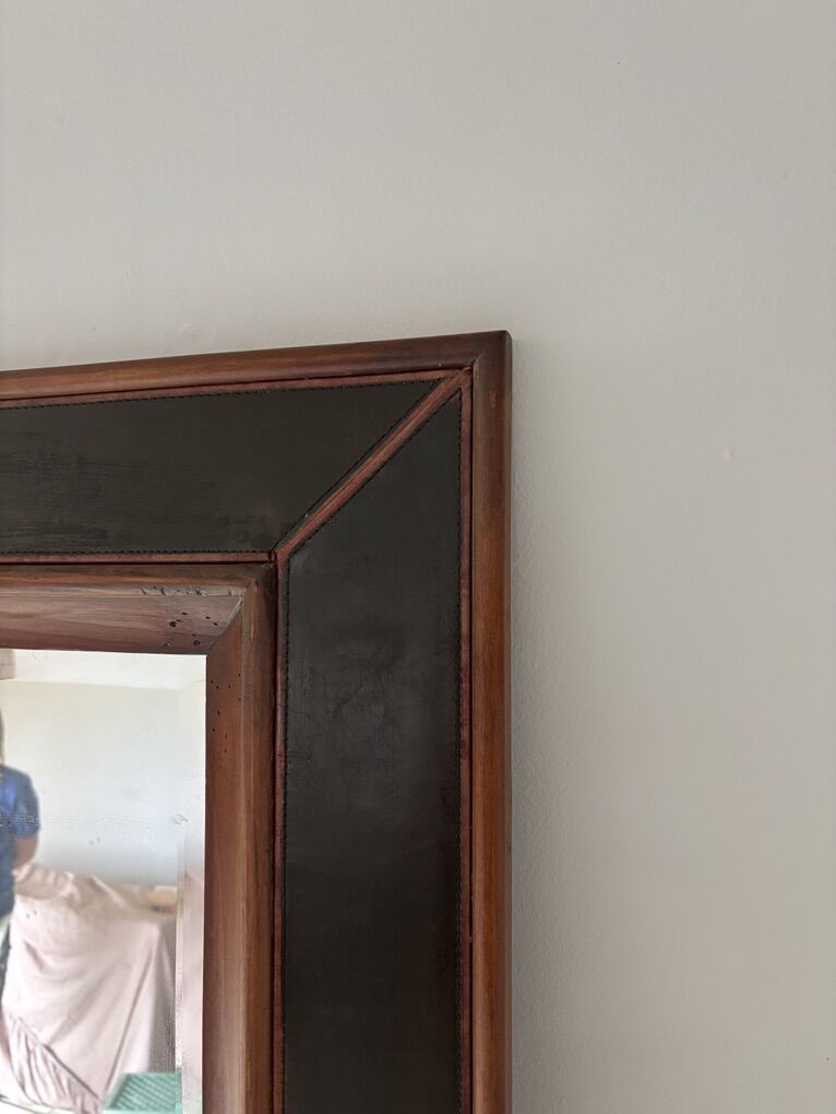 Zelle24” x 72” Nice wood framed mirror, with black leather accents stitched on