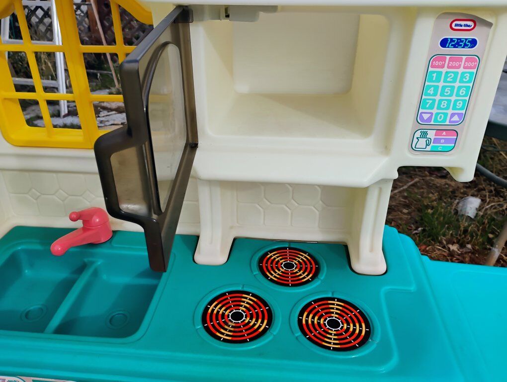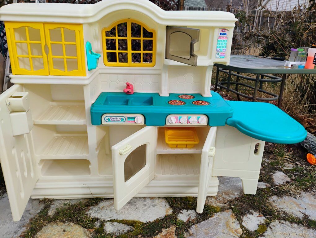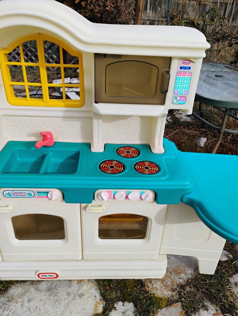 Vintage Little Tikes Country Farm Kitchen playset from the 90's. Has a play stove, oven, sink, microwave, and storage cabinets. One solid piece, doesn't come apart. Measures approx 43"x45"x14". The kitchen is in good used condition, shows some light play wear typical of its age but not structural damaged observed. The doors and cabinets work great. We love this kitchen, we just don't have the space for it. Pick up is near Foothill Village in Salt lake City. I don't have venmo, I take cash only. Let me know if you have any questions.