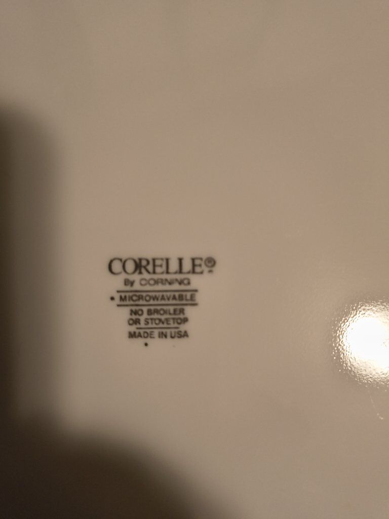 Vintage Corelle, 31 pieces. 10 plates, 10 cups. 10 saucers, and one oval shaped platter, break and chip resistant, $60.00 cash.