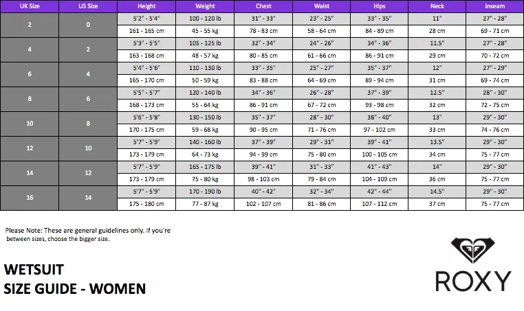 Women’s Size: 4 (please refer to ROXY size chart for exact measurements)