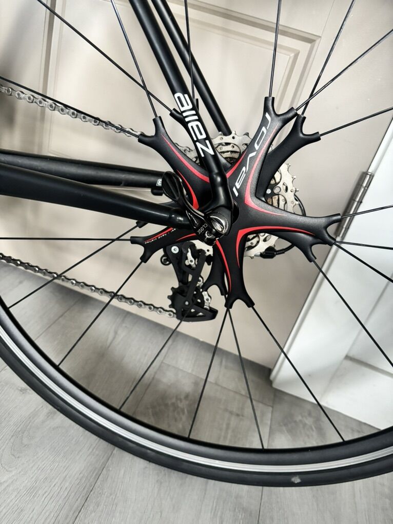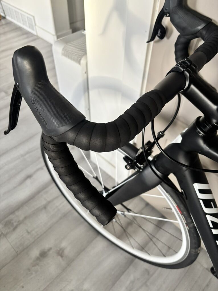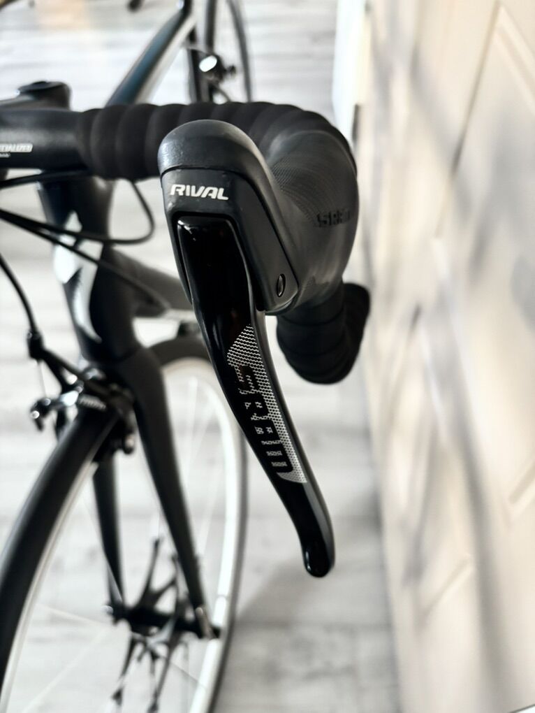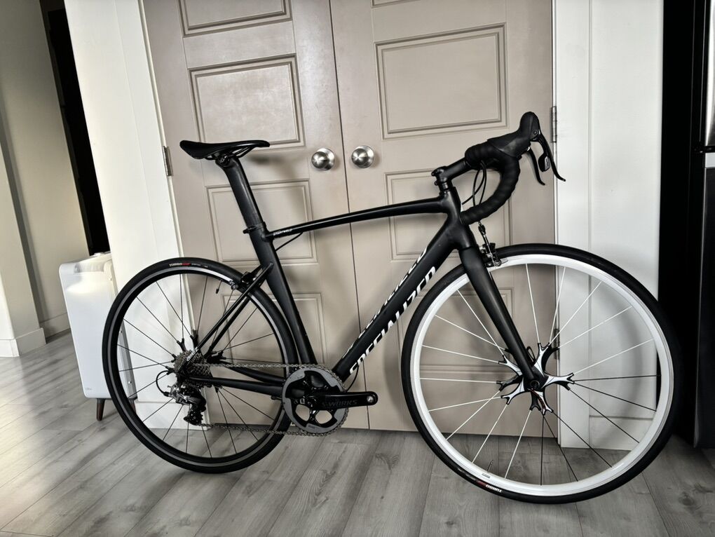 Allez DSW Sprint X1 Comp -Size 56, Rim brake alloy frame -90mm Specialized stem -42cm Specialized Alloy Handlebar (new tape) -Specialized Romin Evo 143mm Saddle (new) -S-works cranks 175mm (1X11) -SRAM Rival double-tap hoods and rear derailleur -Roval Fusée Star E5 Alloy Clincher Road Wheelset -Turbo Pro Gripton Blackbelt 700x28c tires (new)