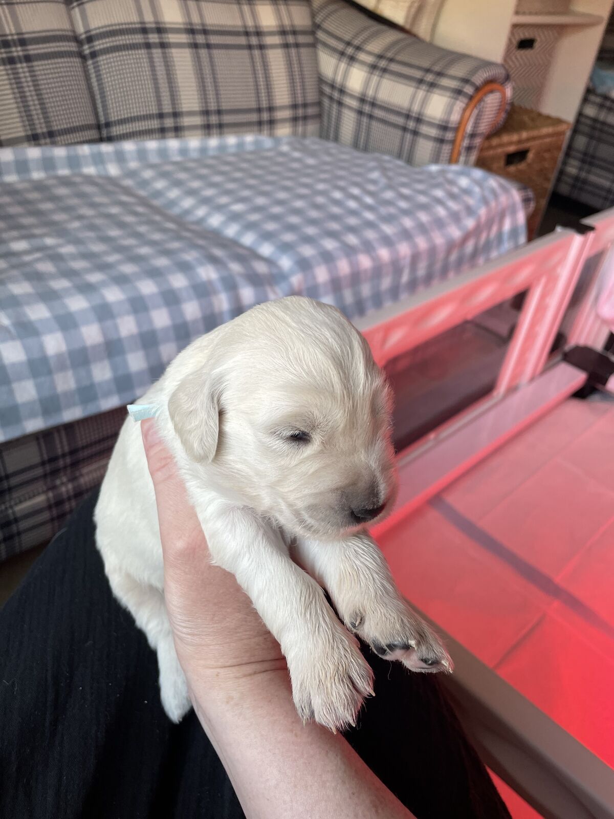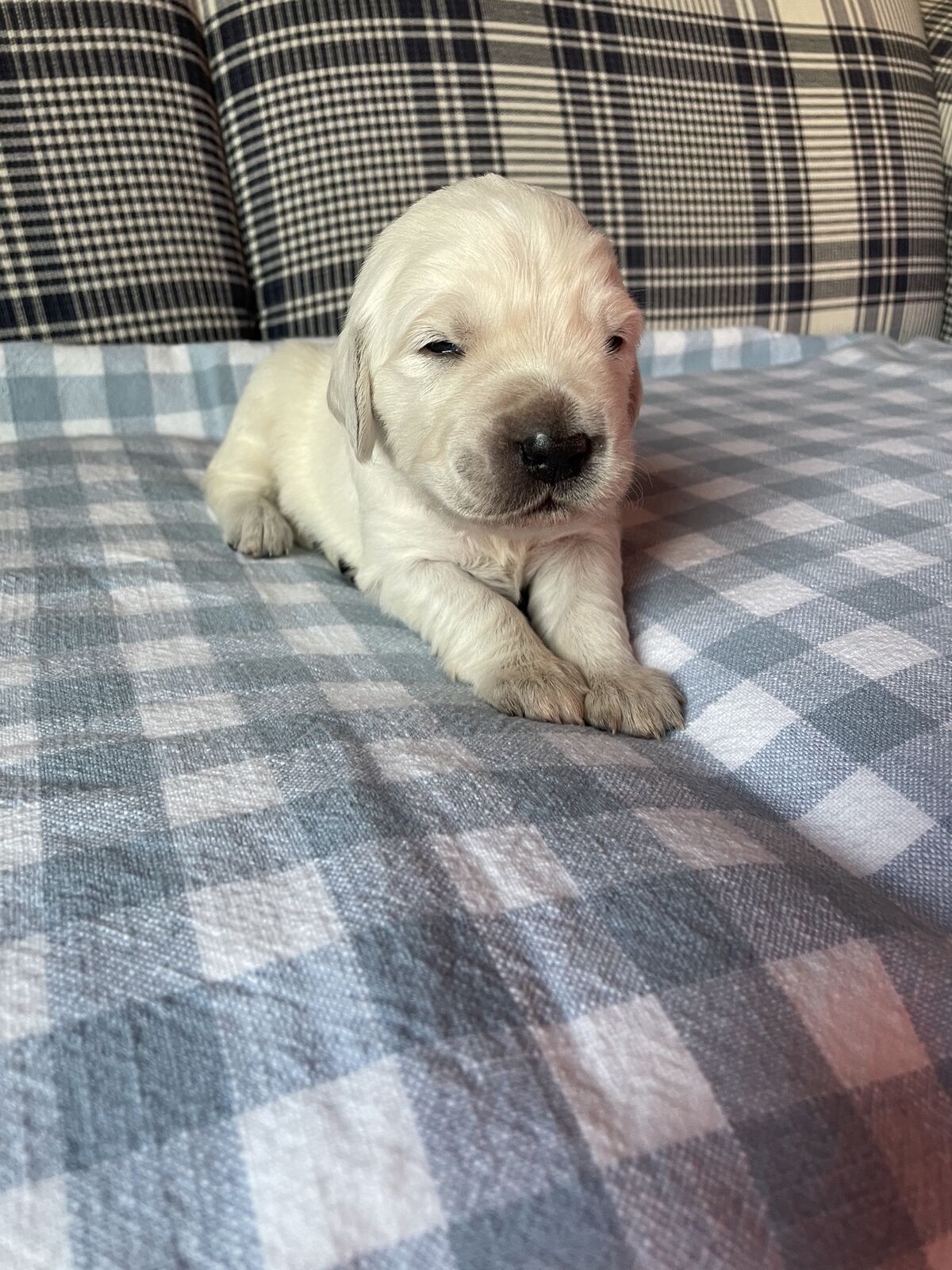 These puppies come from quality English Cream lines known for their calm temperament, intelligence, and stunning light cream coats. They are being raised in our home with daily handling and intentional early development to ensure confident, well-adjusted companions.