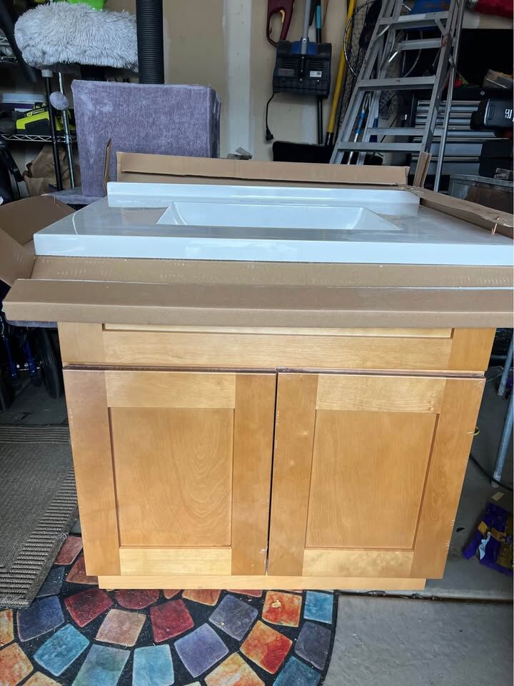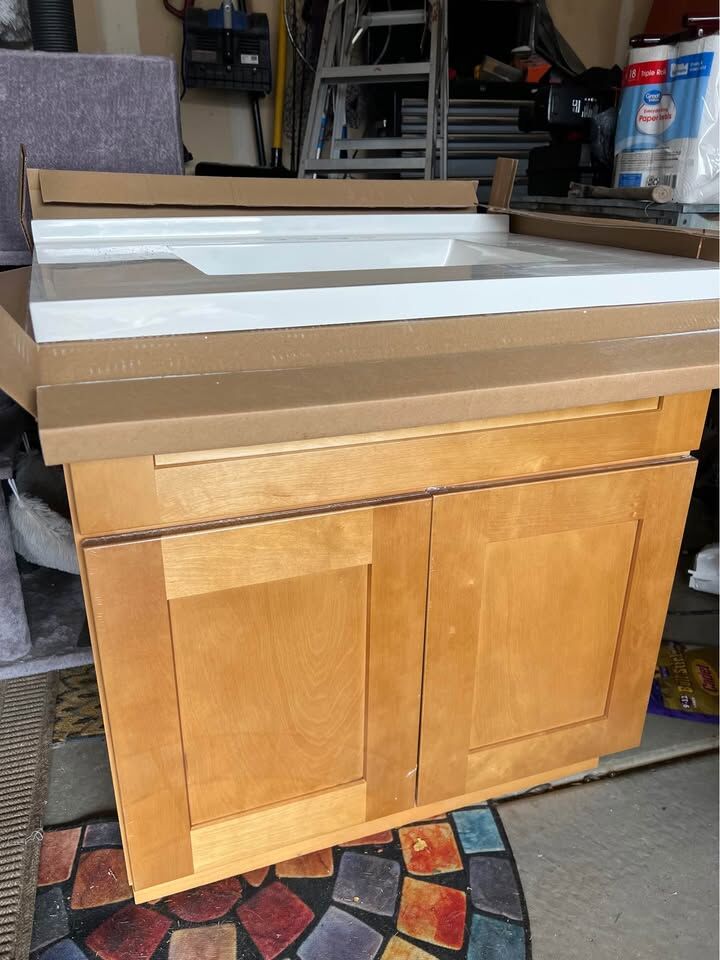 Brookings 31 in. W Single Sink Birch wood Bath Vanity with white Cultured Marble Top. 400$ OBO