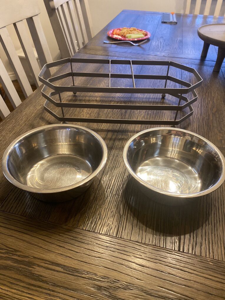 VenmoDog dish for small/medium size dogs. Removable bowls, dishwasher safe. Comes with 4 magnets for keeping track of feeding.