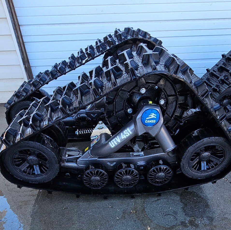 VenmoOnly used for 10 miles. Ground coverage: Approximately 2520 sq. in. Average ground clearance: Increased by 5 in vs tires Climb 20 degree hills Tested in deep snow Haul up to 1000 lb of supplies Tow your 2500 lb shack at speed up to 25 km/h across ice and snow Foam tires with adjusted shape on idler wheels cushions the ride Rubber mounted shafts on tandem stabilizer and wheels absorbs shocks for a more stable ride Flex-Track design offers smoother rides than a flat track Large contact patch eliminates rebounding and improves vehicle lateral stability when sidehilling 1.125-inch lug height enhances traction and control by reducing track ratio Solid steel frame sheds snow, mud and debris High density tires adjusted shape reduces friction and wear Wheel seal design reduces wear and prevents water absorption Triple hub bearing design oil bath lubrication and stainless sleeves increase lifespan and reduce maintenance Adapted sprocket size optimizes gear ratio for more efficient power transfer Front mounted tracks with Flex-Track technology with slight inward curve offers more stable handling System design optimizes steering stability to reduce effort