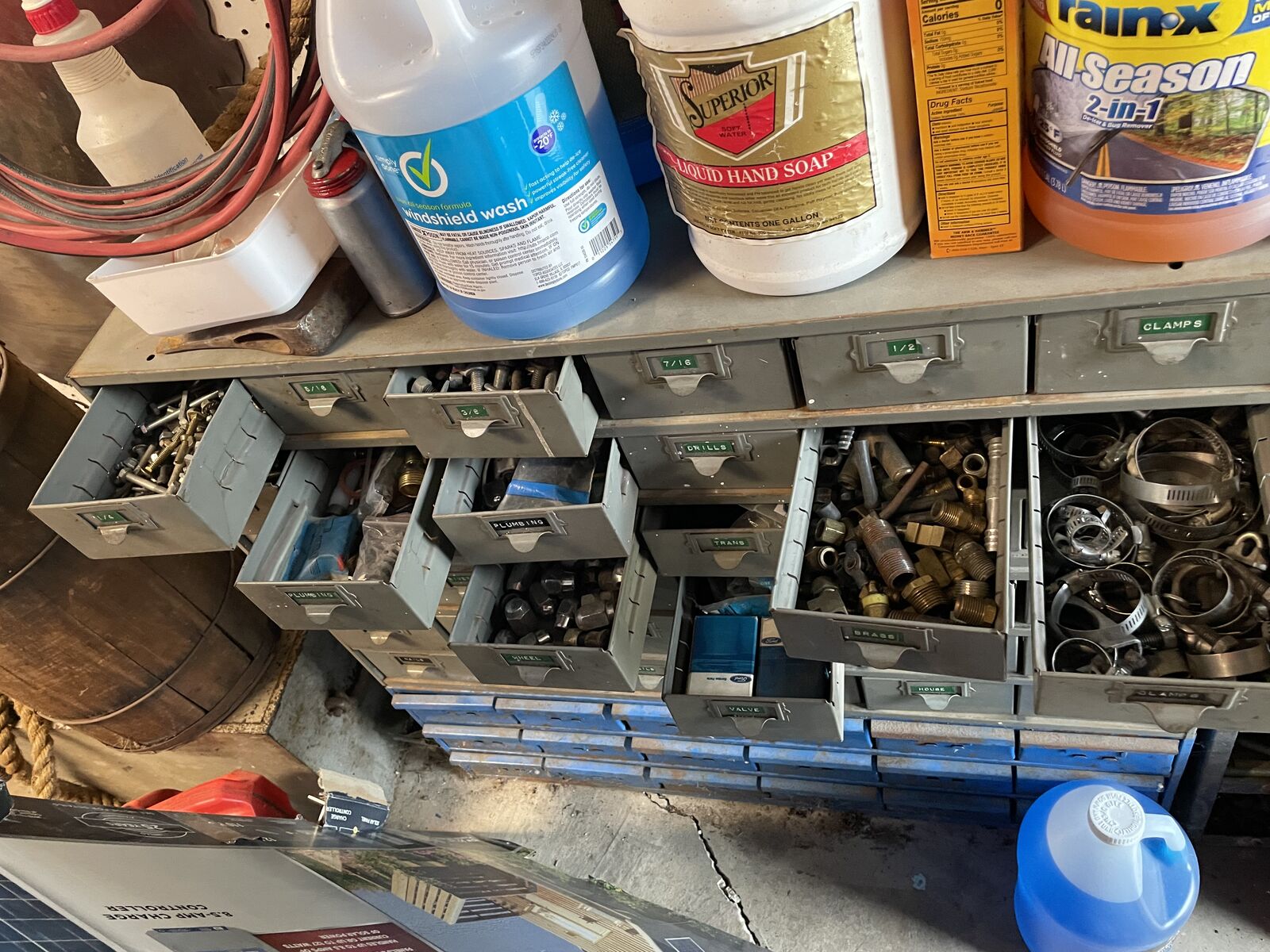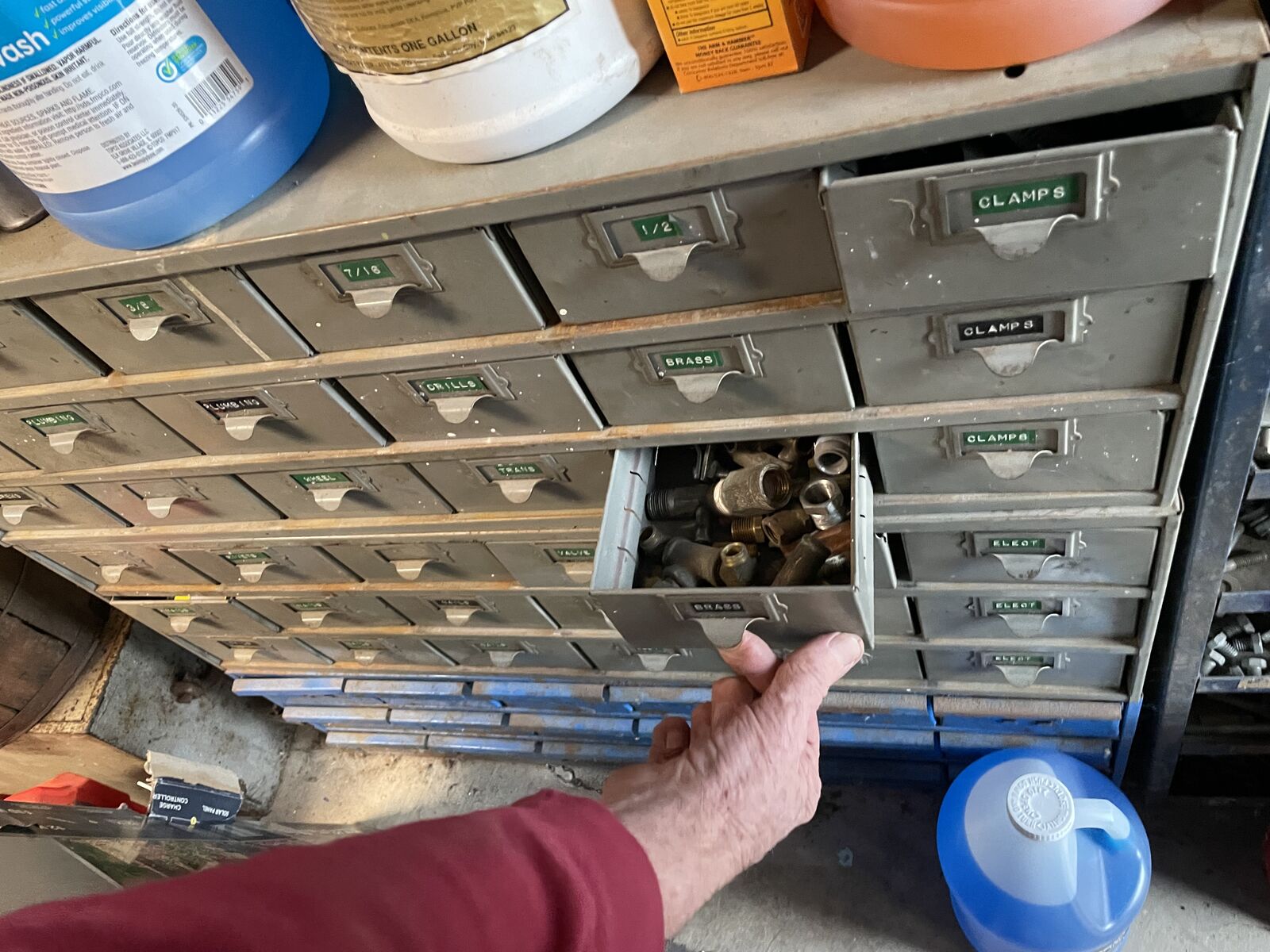 2 huge part stands with assorted part, blots nuts, brass, etc...