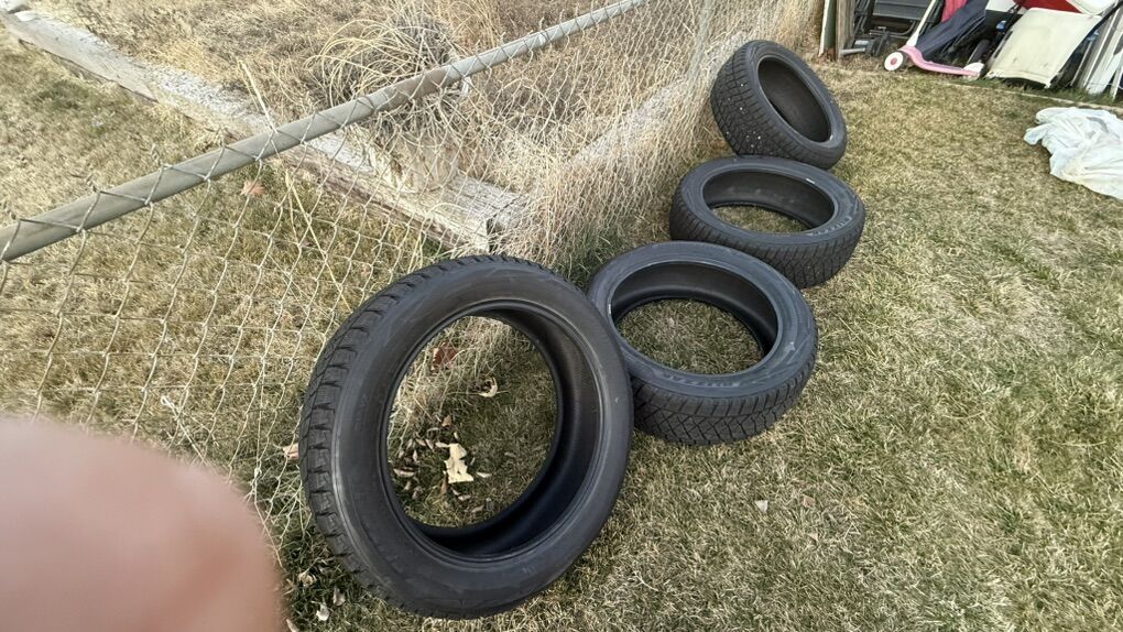 ApplePayThese Bridgestone Blizzack 235–5 5R20 102T tubeless radial tires are SUPER NICE!! ONLY used for one winter season, still like new… a set of 4 brand new sells for $1400 at Walmart. That’s over $500 a tire! I’m asking $400 for the entire set… or, make me a reasonable offer?