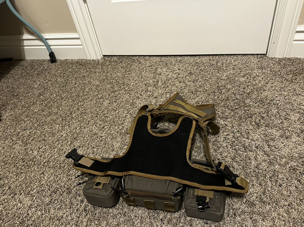 VenmoComes with Bino case, range finder pouch, and also small zippered pouch. The Bino harness has been nothing but good. Will fit up to 12x50. Only reason I’m selling is I got a bigger pair of binos.