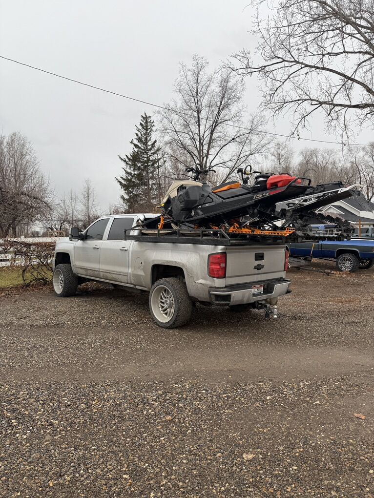 ApplePay8ft by 8ft sled deck, fits 2 sleds comfortably and 3 tightly fit. It has a 10ft ramp that collapses into itself. The ramp stores under the deck, so its hard to see in pictures. Fits in a 6.5 foot bed easily, but it would also fit in an 8 foot bed. Been a great deck i just ended up buying a trailer so i dont need it anymore. $2,000 obo but i am open to trades for a sxs or something else. Let me know what ya got!