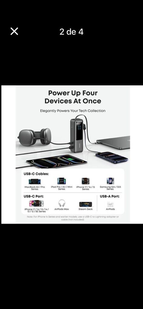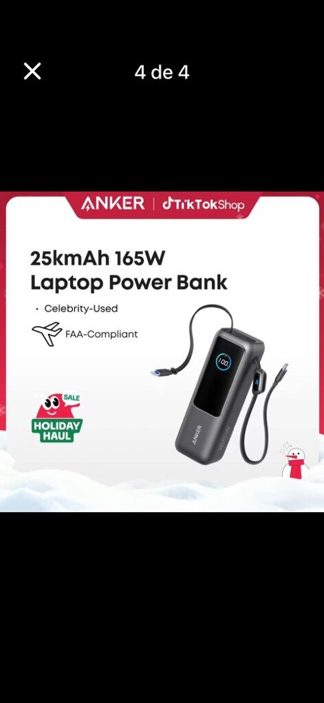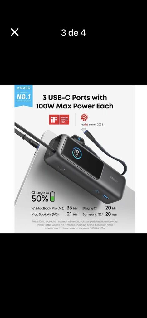 VenmoAnker Portable Laptop Power Bank with Built-In Cables, 25,000mAh High-Capacity Battery, Fast Charging for 4 Devices, Ideal for Office and Trips, Compatible with iPhone 17/16, MacBook, Galaxy, and More