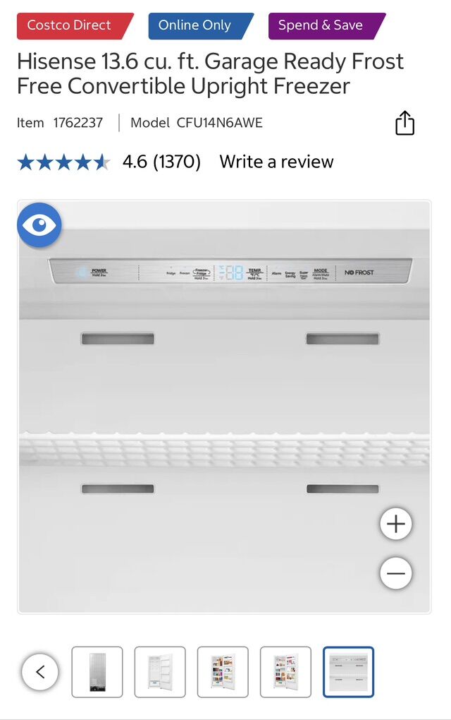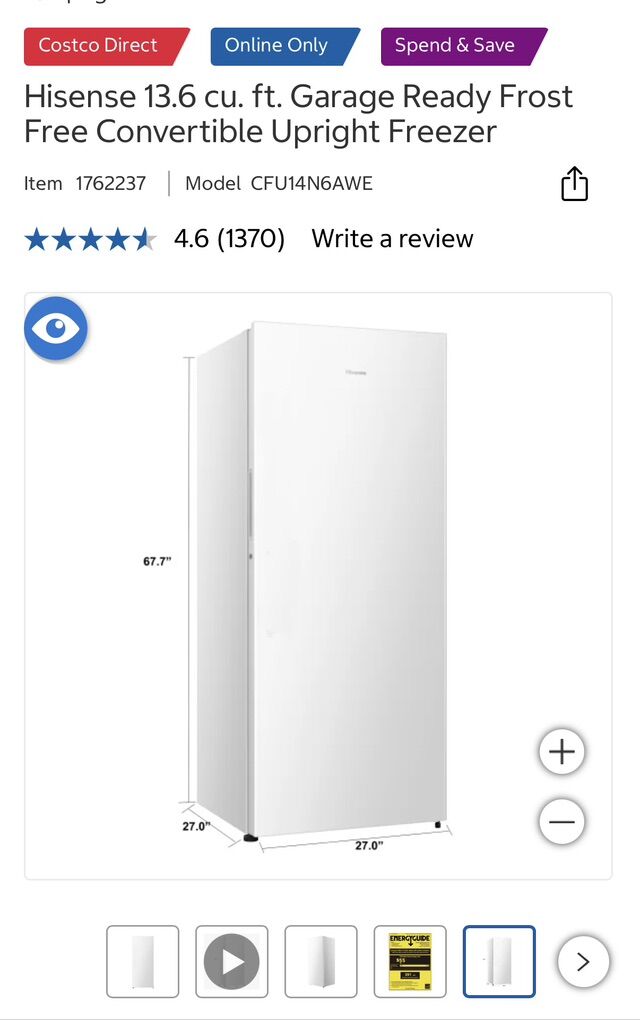 ZellePurchased this garage freezer only about 6 months ago from Costco and already need to expand. It’s a great freezer for small family or if you just need some extra freezer space. Owners manual and all original parts included.
