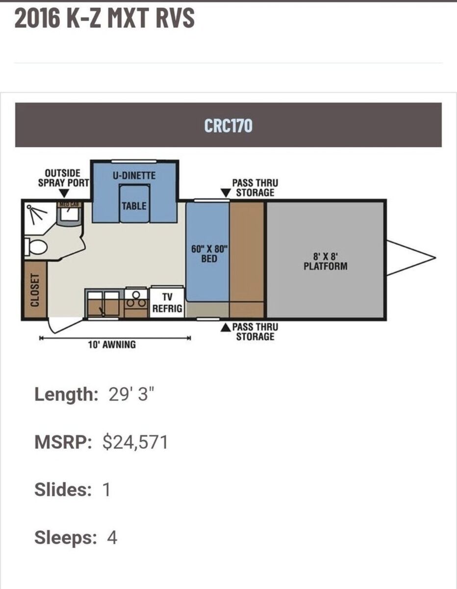 2016 KZ RV MXT CRC170 with Slideout, toy hauler
