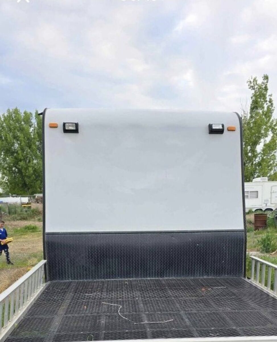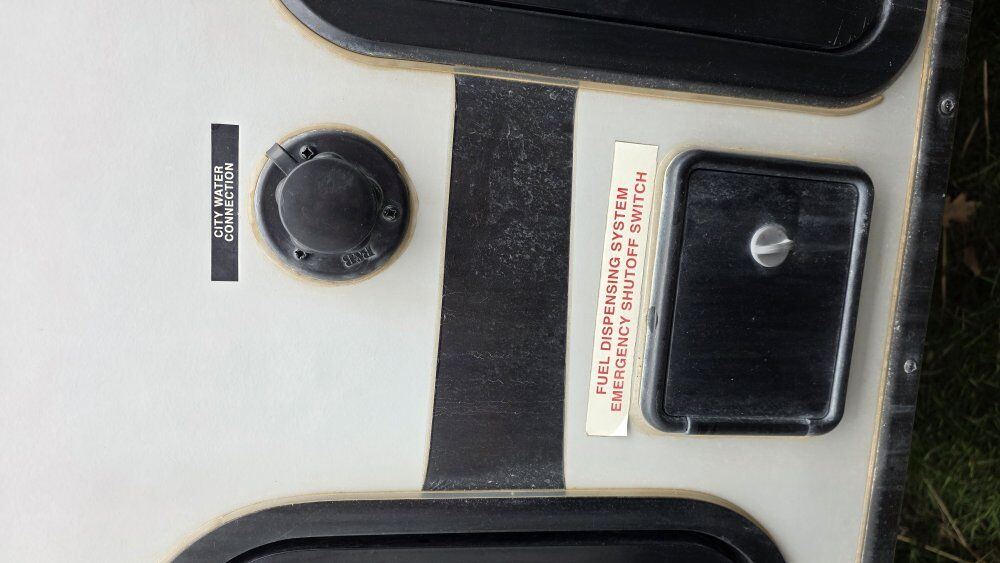 NEVER BEEN DAMAGED. The front panel has not been damaged or changed, the sticker was removed, you can still slightly see the sticker outline. The toolbox was an add-on to the trailer and costs over $3000 for it plus install (no, not charging more for it)