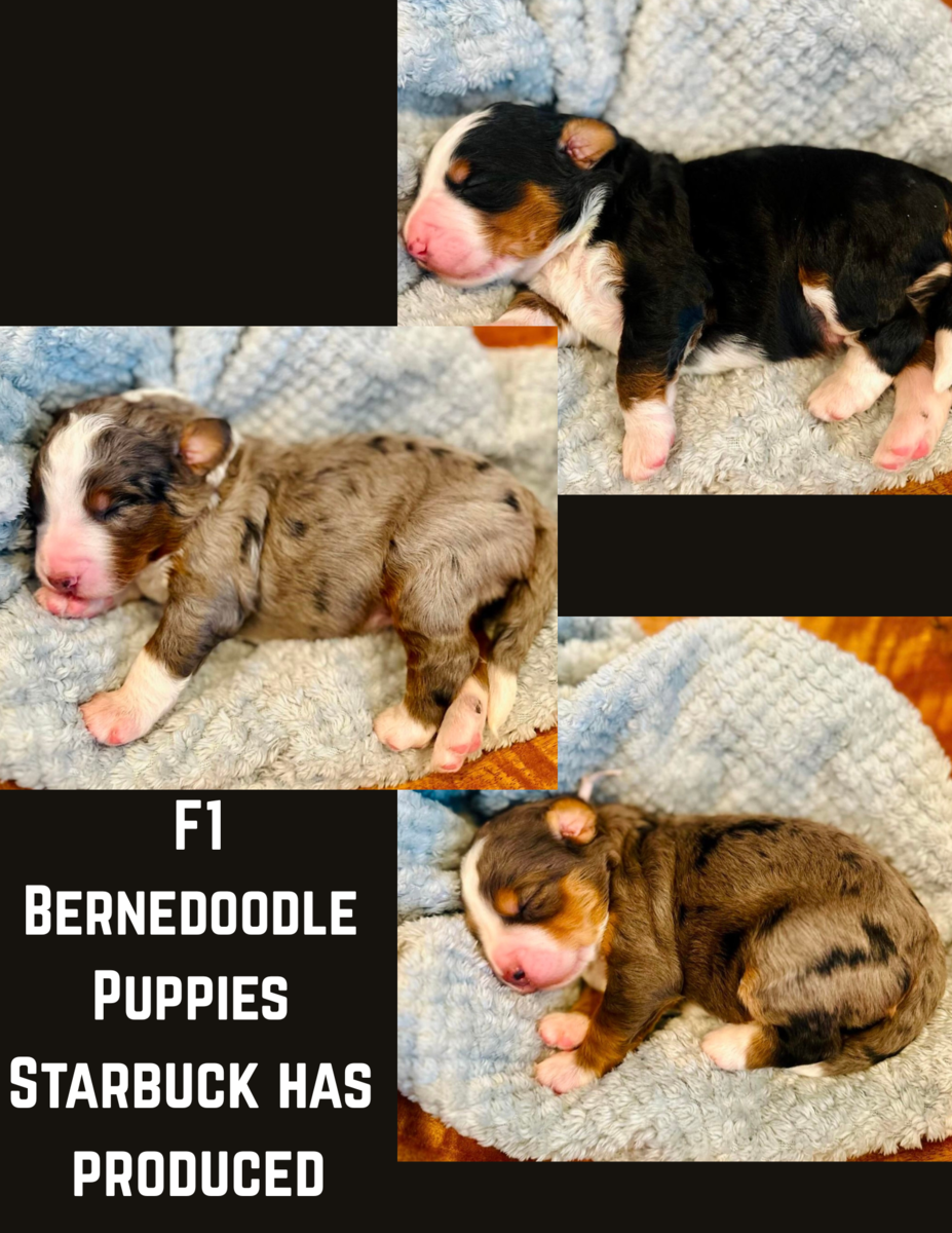 Starbuck is proven and produced F1 Bernedoodles with perfect blazes and no parti. He collects on cue. Available for shipped semen, side by side AI, or live cover with clean brucellosis. Coat and colors are as follows:
