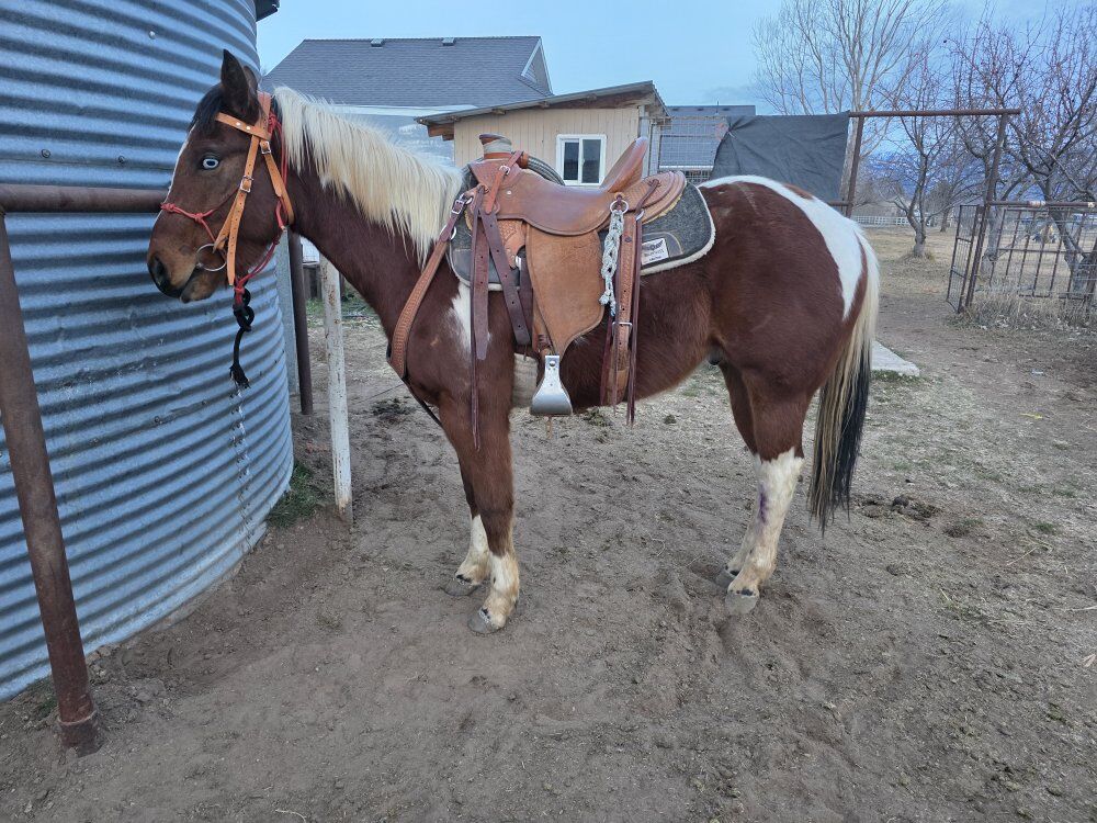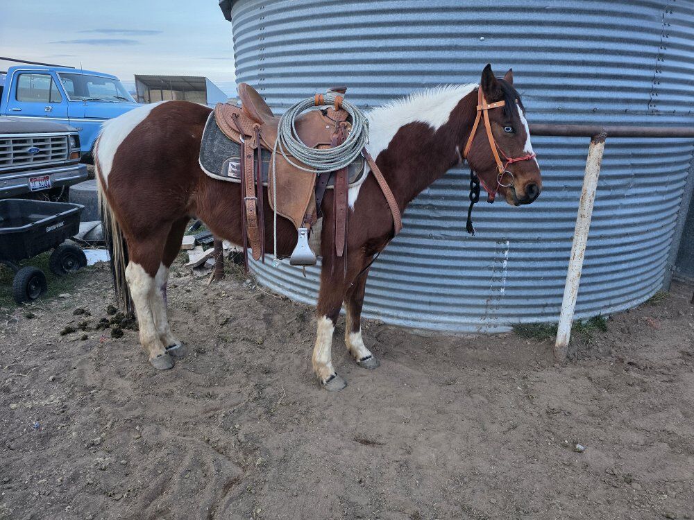 Jake is a 3yr old grade bay tobiano (not registered no papers) hes got lots of chrome! Hes about 15.3hh maybe 16 hh Hes big and stout and hes still got some growing to do. He has a good start to him. He does ground work well. He has been saddled alot going to start riding him. Takes a snaffle bit easily. He's gentle, pretty easy going! You can pick his feet up he has been trimmed twice and did very well He stands tied very well. He doesn't seem to get bothered about much. He'd make a super nice ranch style horse, head/heal horse or even a great pickup horse I plan on riding and working with him till he sells asking $5,500