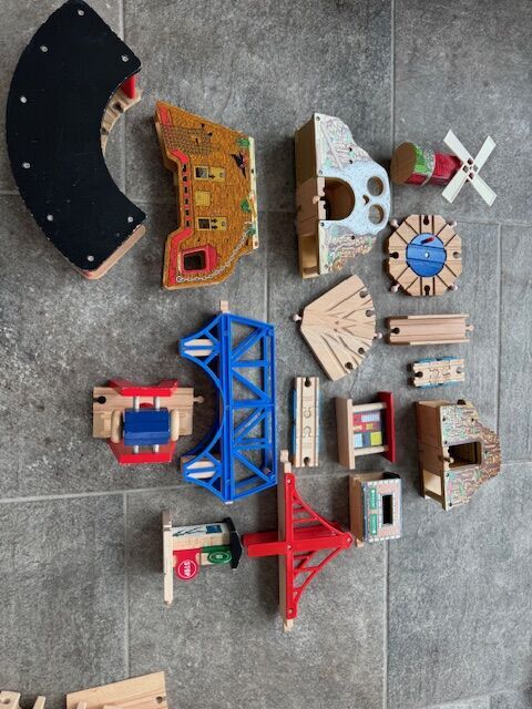 ZelleThis sale is for a large bin of Thomas the Train engines, wagons, cars, blocks, tracks, bridges and a other wooden supplies. The set includes two motorized engines (Thomas and Hiro). The sale includes everything shown in the images and a large plastic bin for storage. Our kids have outgrown these and they are ready for another family to love.