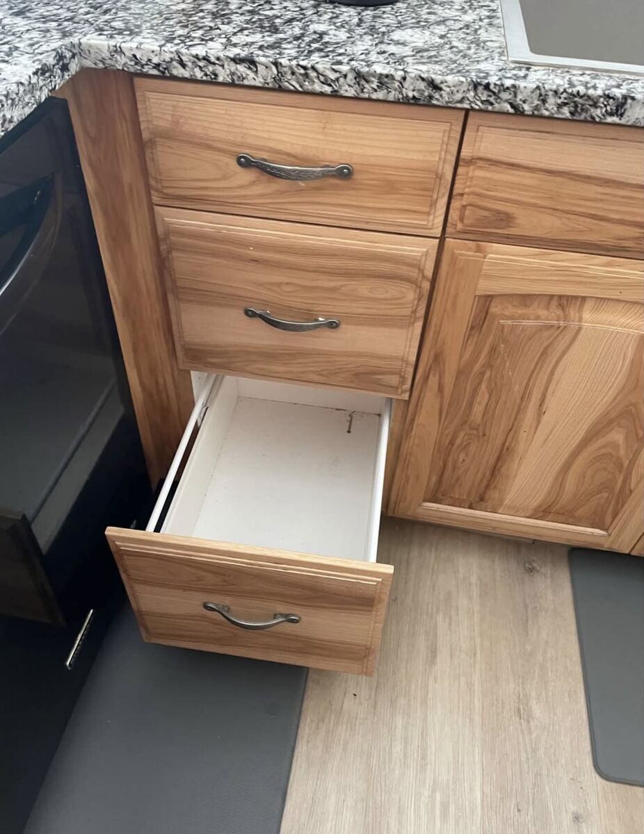 Well built and ready to go Hickory cabinets and thick granite countertop. Details and measurements below.
