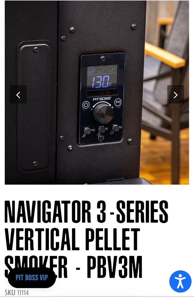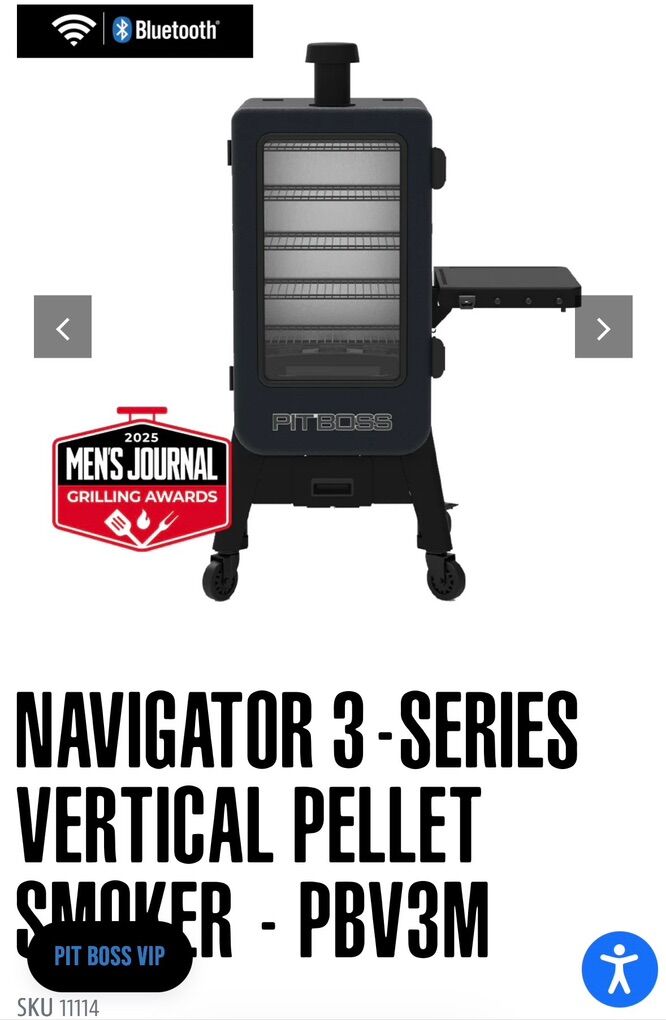 The Navigator 3-Series Vertical Smoker is designed for those who love to barbecue (and enjoy BBQ) from their own backyard. Fueled with 100% all-natural hardwood pellets so you can craft mouthwatering smoked food from one easy-to-use machine. Now outfitted with a Wi-Fi® and Bluetooth® connected control board for even more convenience during your BBQ session. From adjusting your grill's temperature, to monitoring meat doneness, you can do it all with the Pit Boss Grills app (https://pitboss-grills.com/pages/app).