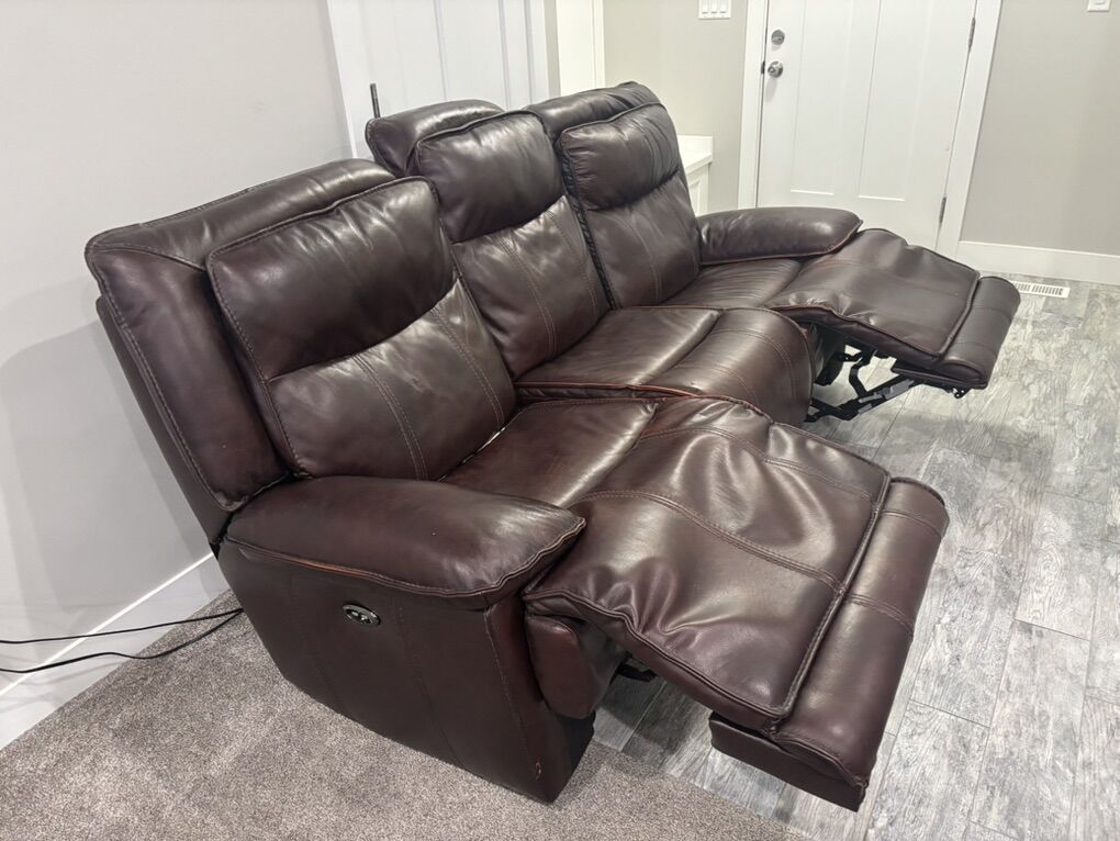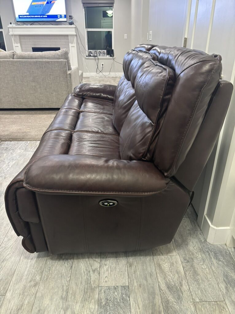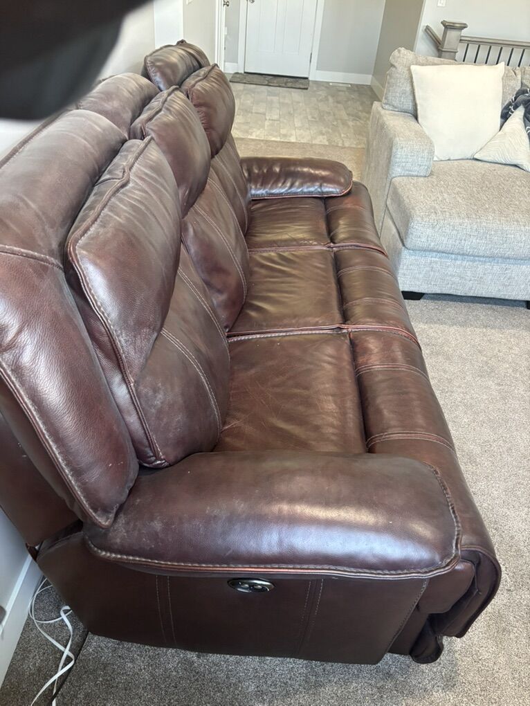 Venmo8 foot cushion to cushion Electric reclining leather couch. Both recliners work well. $200 OBO