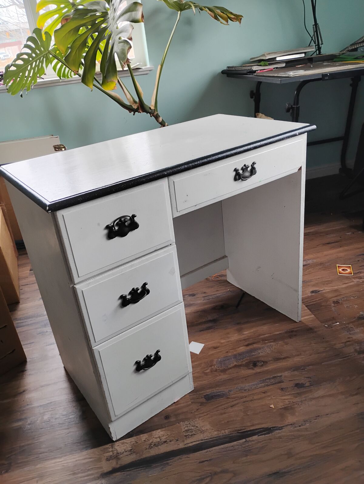 ZelleThis sturdy, white desk has worked well for our kids. It can be used for many things, even fish tanks. It's about 2' 9 1/2" wide, 1' 5 1/2" deep and 2' 6" high.