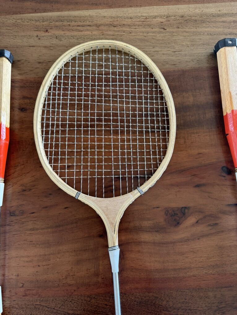 VenmoWood and metal badminton rackets. Really cute hung in a boys room, cabin or office.