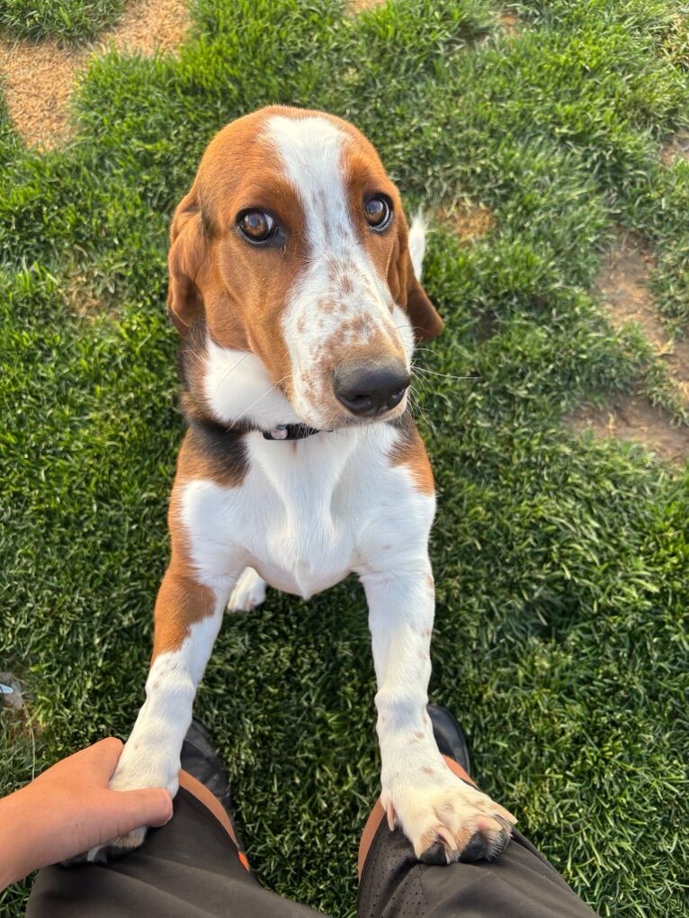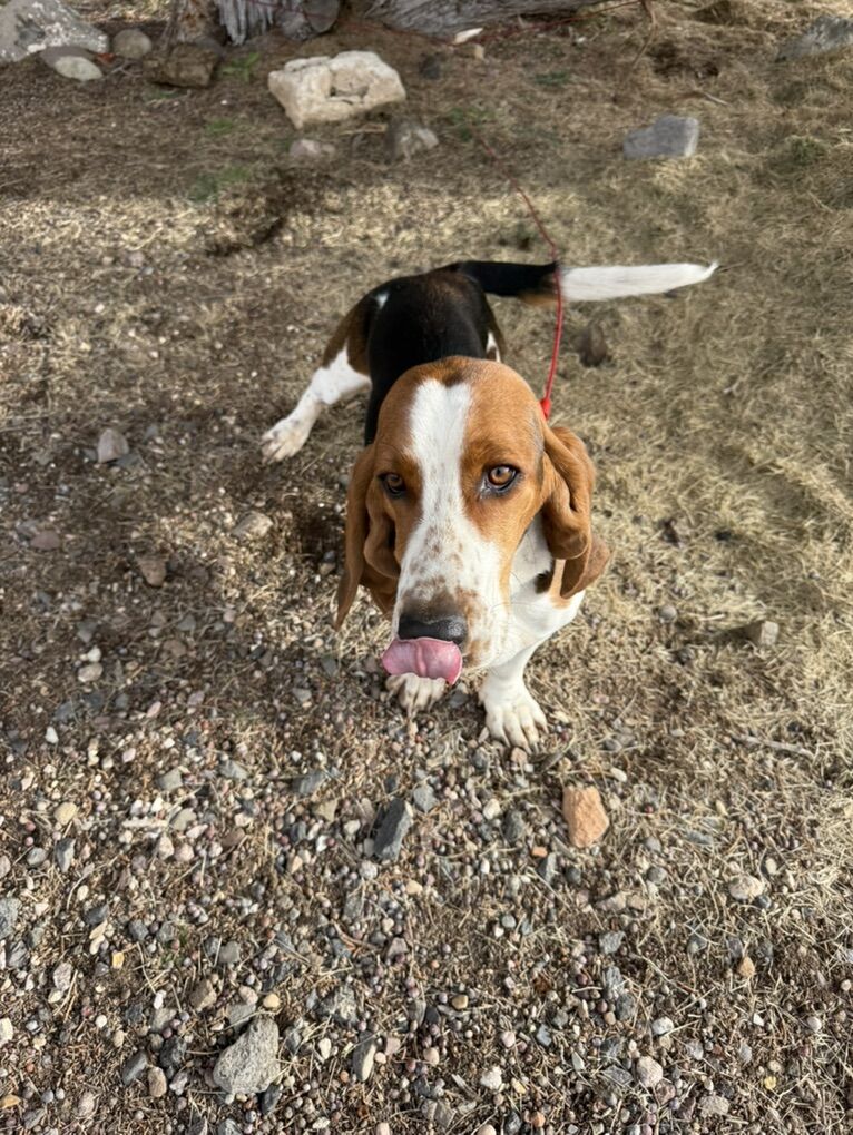 This is my 1 year old basset hound named goose. She is a really good dog she isn’t papered I would love to keep her but I am moving due to my new traveling job and will not be able to take her with me