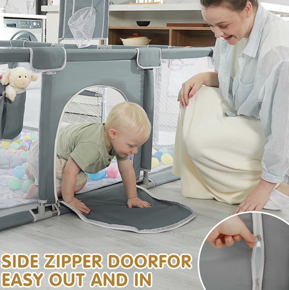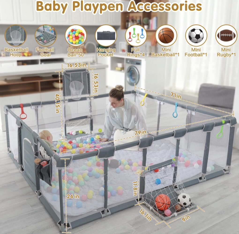 ZelleXNWQL Baby playpen, 79x71Baby Playpen with Mat Indoor&Outdoor Playpen for Babies and Toddlers with Breathable Play Pen with Ocean Balls Hanging Pocket Basketball Hoop and Football Goal