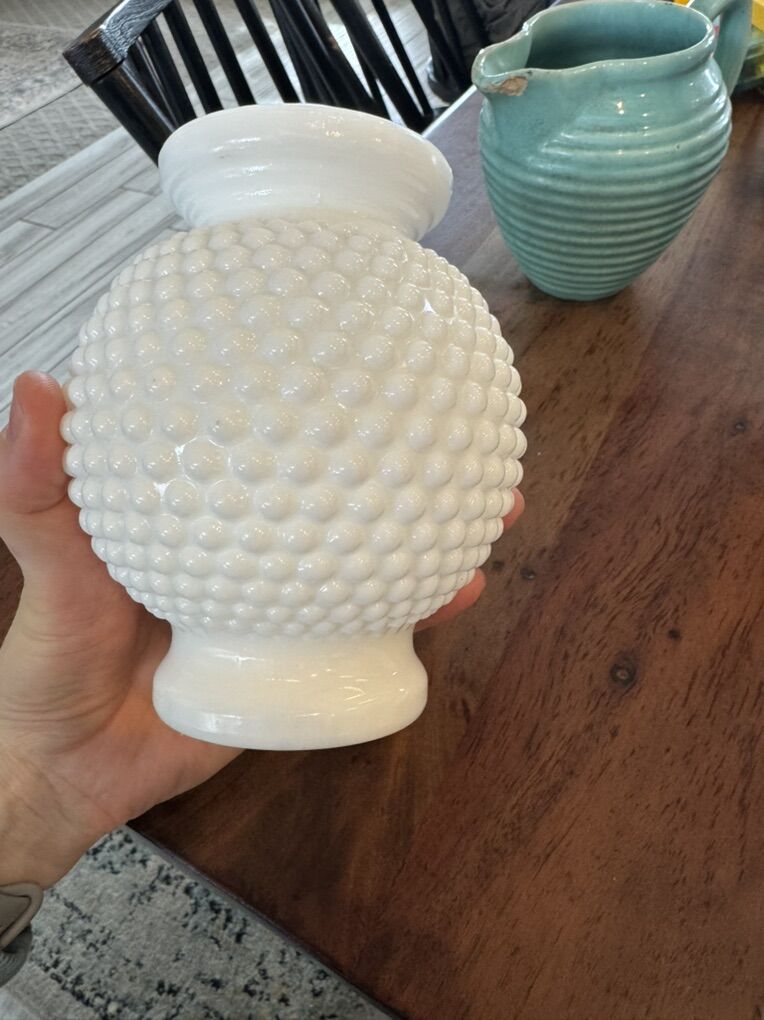 Ribbed pitcher vintage possibly Bauer Pottery has a chip on the spout. Very cute vintage condition $10