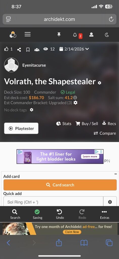 I am selling a commander deck I put together but never played, it comes double sleeved in red dragon shield sleeves, and has mixed foils and non foils in the deck. Archidekt considers this a bracket 3 upgraded deck for $180