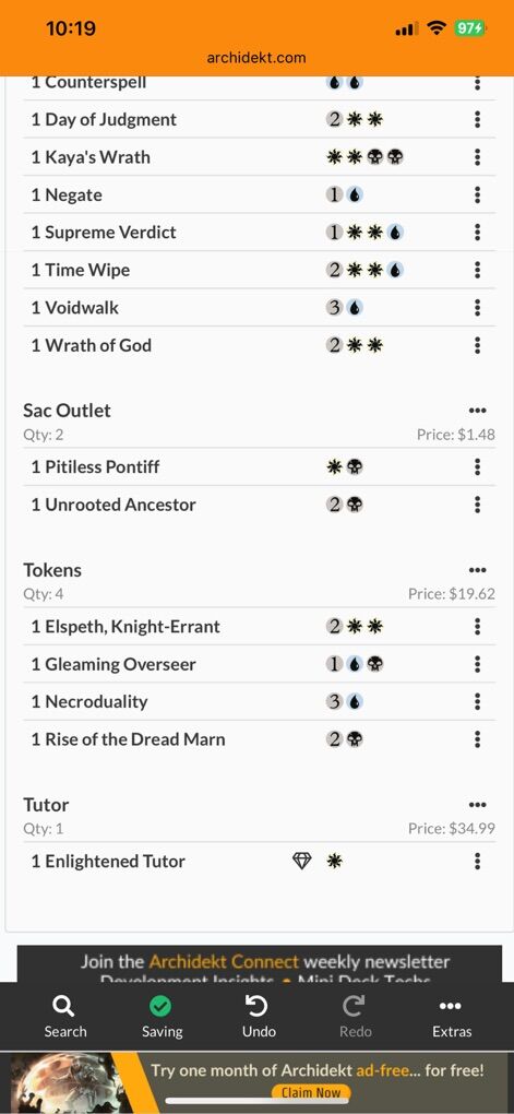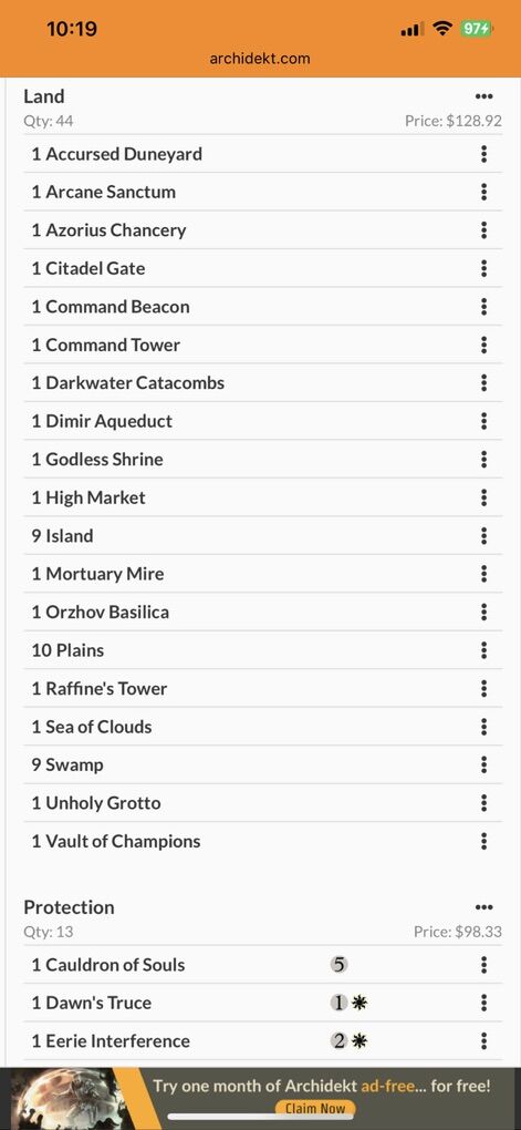 I am selling another commander deck, it comes double sleeved in peach dragon shield sleeves, and has mixed foils and non foils in the deck. Archidekt considers this a bracket 3 upgraded deck for $420